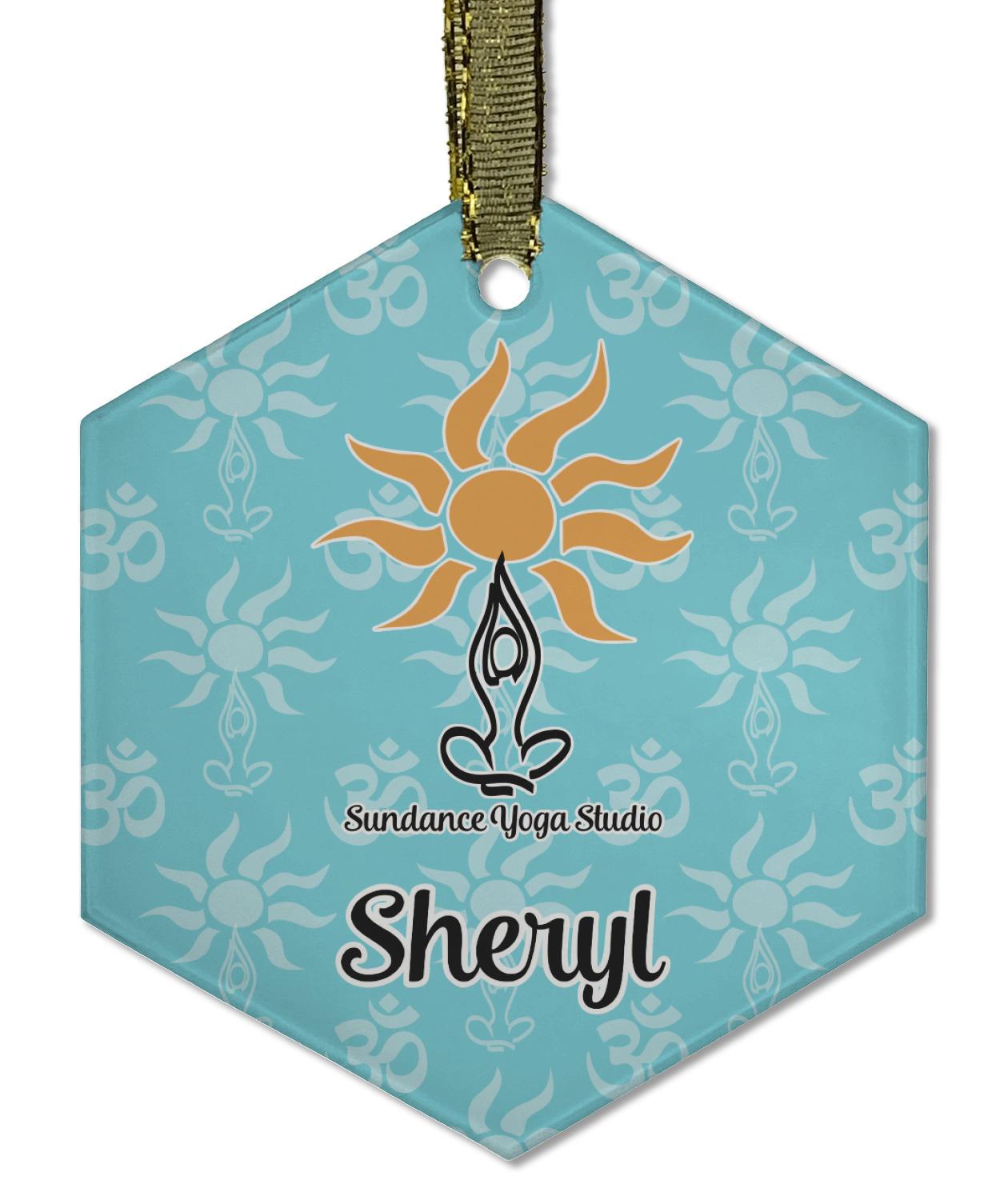Each of our flat glass ornaments come with a gold string to hang on your Christmas tree with style! We offer two different shapes - flat, round ball or a hexagon. Both glass ornaments have a frosted coating on one side where we print your design while the other side is a clear gloss to give your personalized ornament a sheen finish. Our flat round glass ornament is approximately 3.5" x 3.5" while the flat hexagon ornaments are approximately 3.5" x 3".