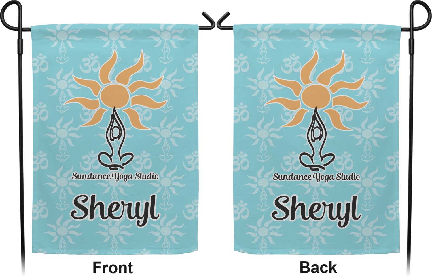 These custom garden flags are made of a durable, double-ply, polyester weave, allowing them to withstand the elements year round. The small flags measure at approximately 12 by 18 inches. The large flags measure out to 28 by 37 inches. You can order these decorative flags with your customization printed on the front only, or the front and back.