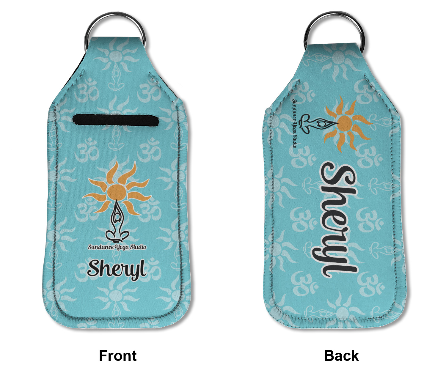 Each hand sanitizer holder comes with its own empty travel-sized, refillable hand sanitizer sure to fit snug in your customized sanitizer case! Our hand sanitizer cases are a durable, yet soft neoprene material sure to last any daily activities or travel agenda. Customize and personalize a hand sanitizer bottle holder with one of our two sizes - small (4.25" x 2.25") or large (5.5" x 2.5"). Each travel sanitizer holder comes with a keyring for attachment on bags, keys, or more!