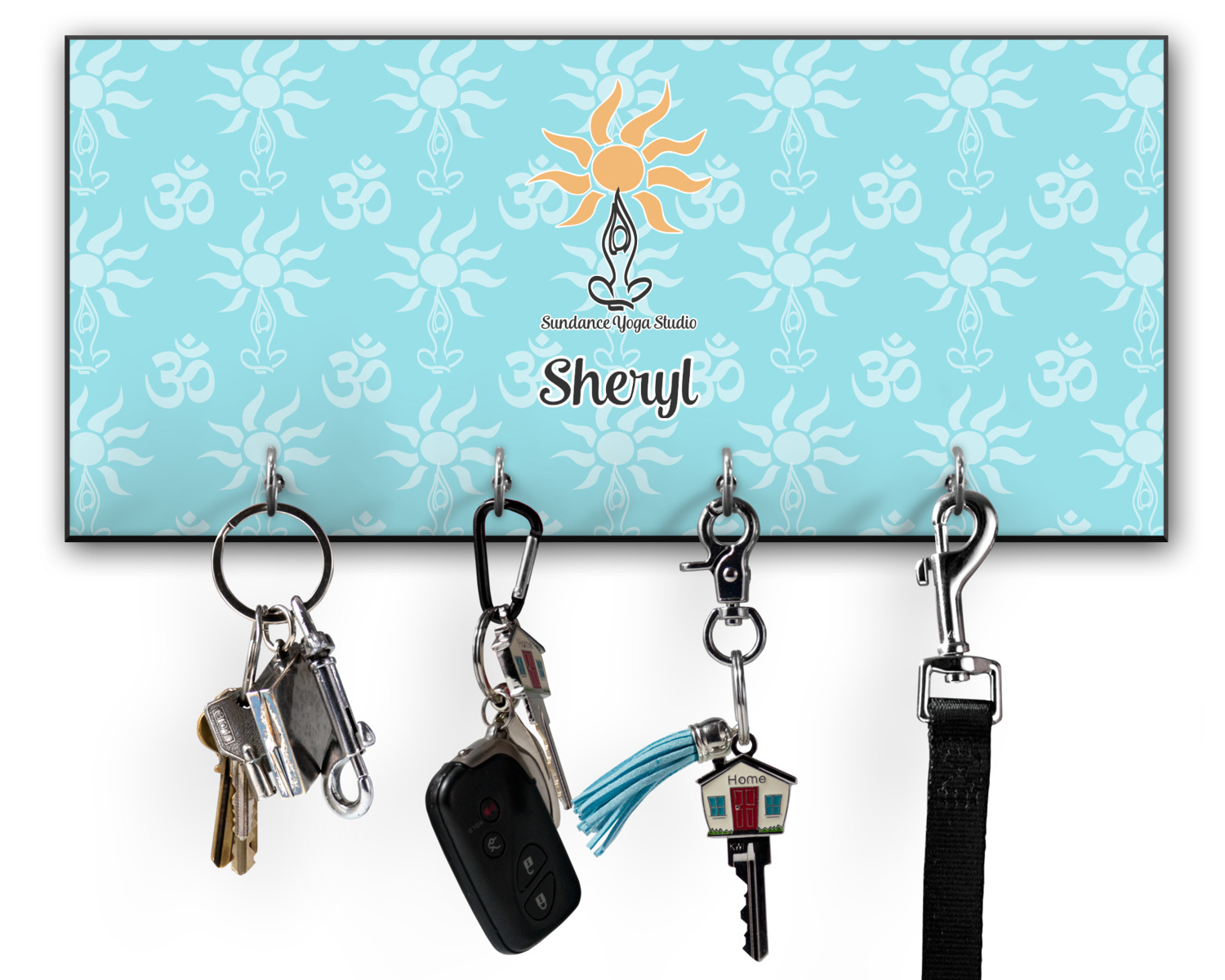 This 11" x 5" key hanger is made of sturdy wood and has four metal hooks lining the bottom. This is the perfect size for a family with several drivers. Not only can you hang keys on it though, but pet leashes and other small items. The board is black on the sides and back and is printed with the design of your choice on the front.