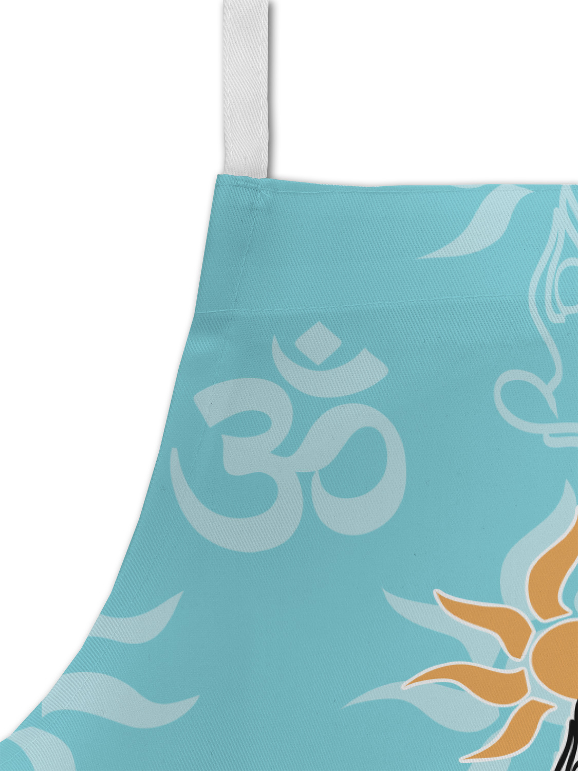 This calming design is dominantly a gorgeous light teal with the the Sundance logo, as well as the om symbol, repeating in the background. The main logo is prominently displayed front and center. The logo is a simple drawing of a figure doing the lotus pose with a sun rising above them. "Sundance Yoga Studio" is written beneath the logo. You personalization goes directly under the logo to create a finished design.