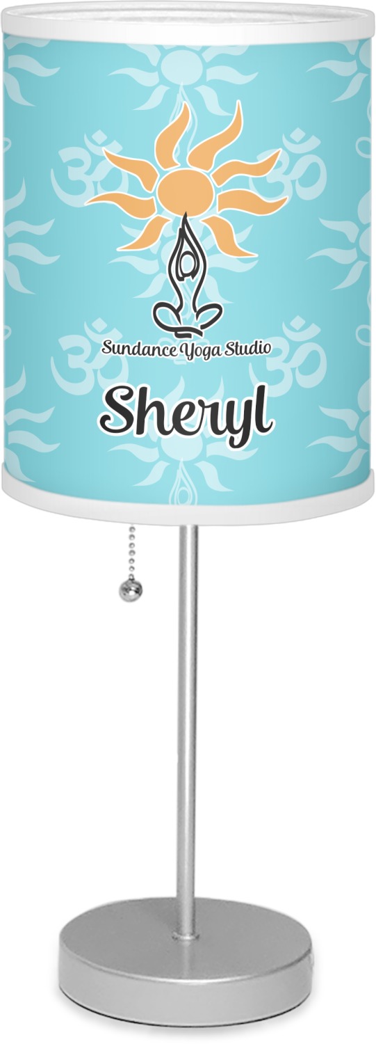 This calming design is dominantly a gorgeous light teal with the the Sundance logo, as well as the om symbol, repeating in the background. The main logo is prominently displayed front and center. The logo is a simple drawing of a figure doing the lotus pose with a sun rising above them. "Sundance Yoga Studio" is written beneath the logo. You personalization goes directly under the logo to create a finished design.