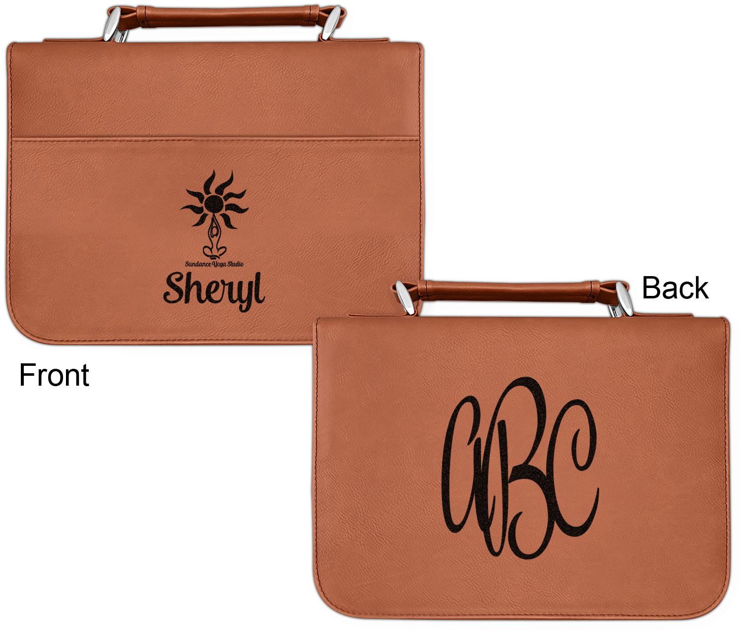 We offer these custom book covers in several variations. First, we offer two different sizes. Our small can accommodate books of up to 8.5" x 6" x 2". The larger size can fit books up to 10" x 7.125" x 2". Both of these sizes can then be customized according to your preference; you can either choose to laser engrave a design on the front and back, or solely the front.