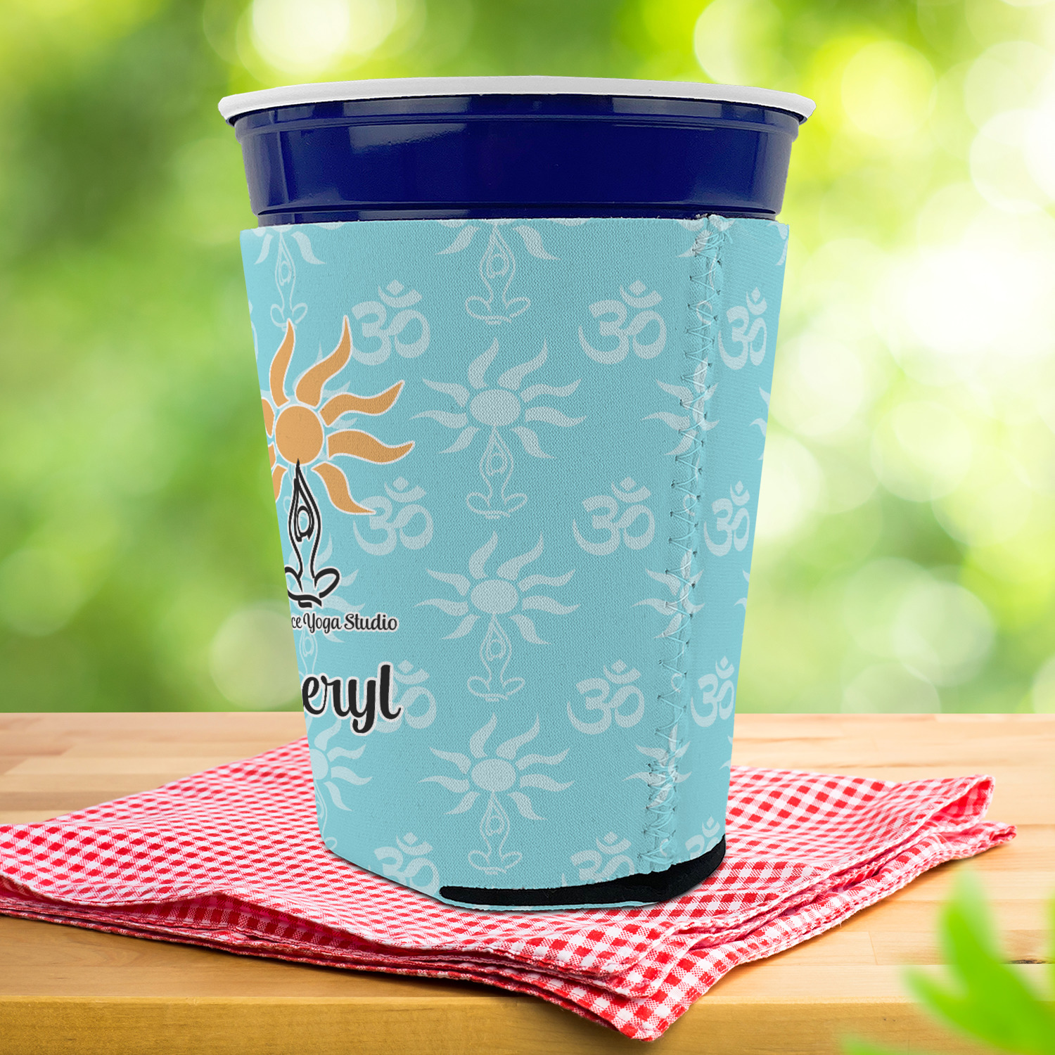 Made from neoprene with a polyester outer fabric and sewn seams, these premium quality party cup sleeves are very durable and will hold up to heavy use. They are available in 2 styles - with a bottom or just a sleeve to go around the outside of the tapered cup. The sleeve covers are about 4" tall and cover about 90% of the classic 16 oz. Solo cup.