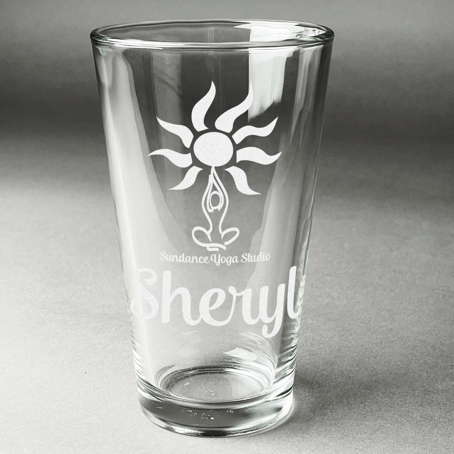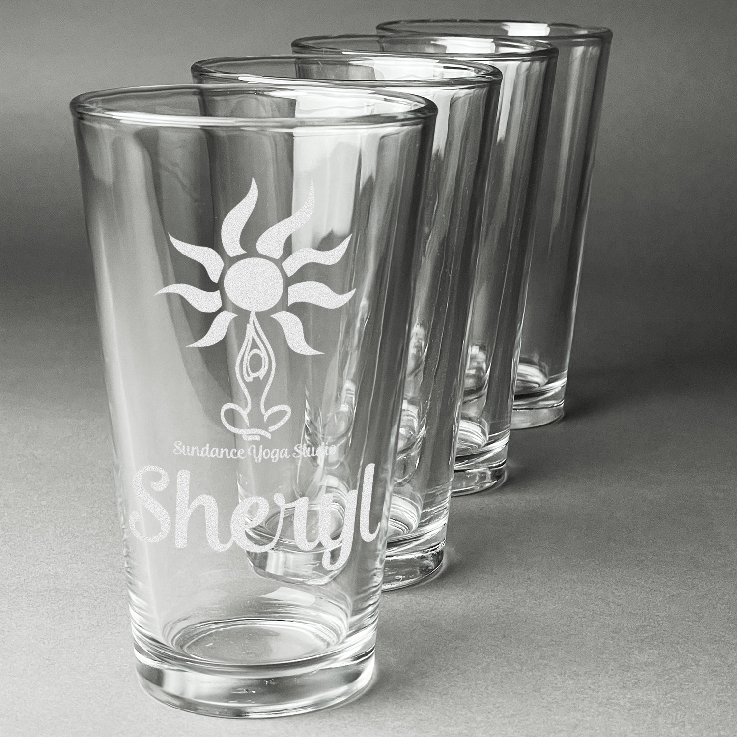 Available in a single glass or a set of 4 - each glass will be custom engraved with your design. Each glass holds 16 oz and measure 5.75"H x 3.5"W.