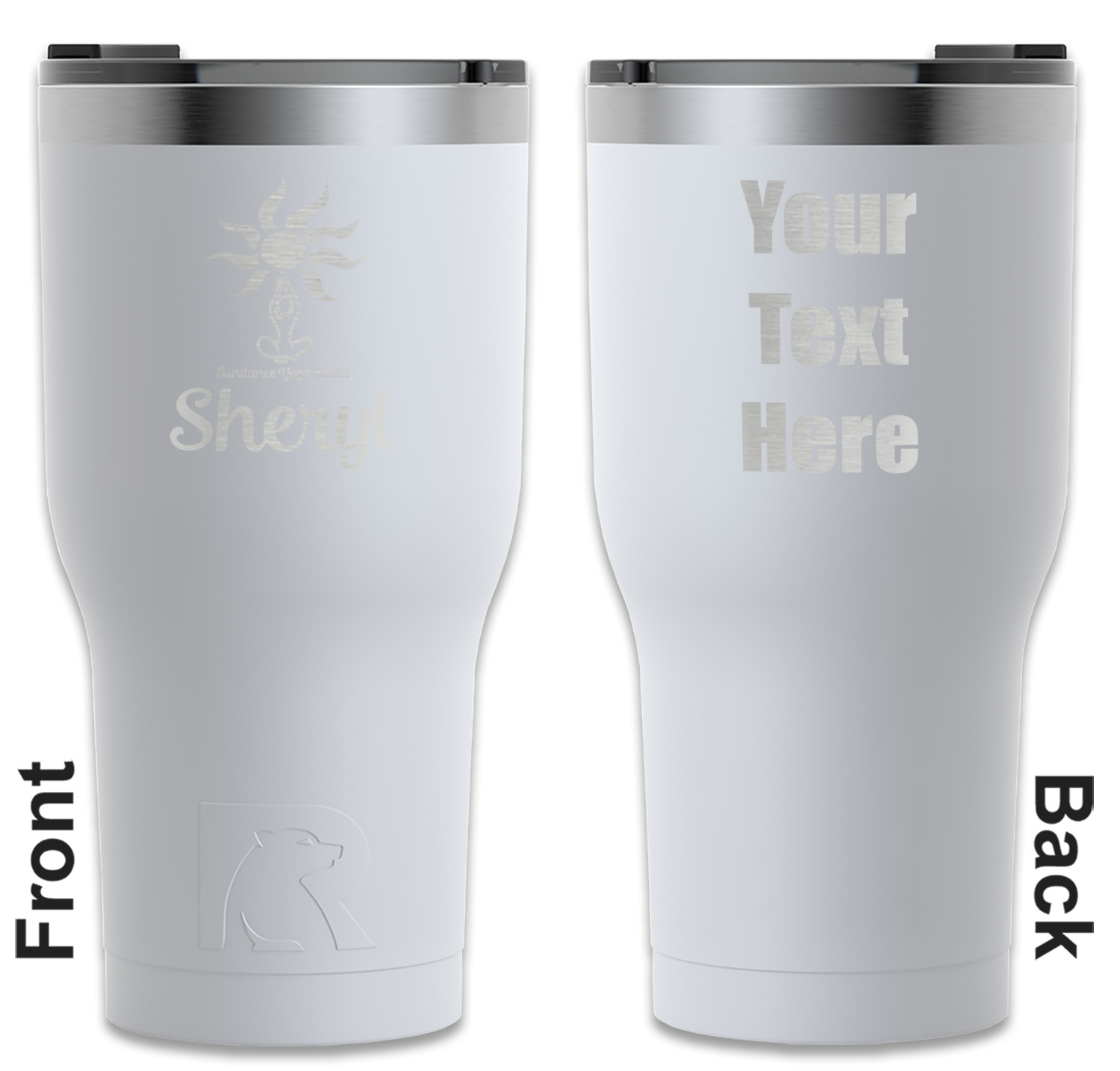 We sell these RTIC 30 Oz Tumblers in three different colors with two different engraving options. Choose from our selection of teal, white, or black. You can either choose to engrave the front only or both front and back. Your engravement will reveal the stainless steel material beneath the powder color coating, creating your personalization in a beautiful silver.