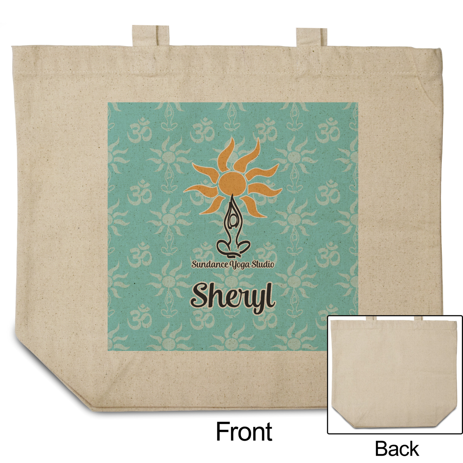 These cotton totes are washable and easy to care for, and they can be folded flat for storage. Your artwork, logo, or photo is printed in full color directly on the cotton tote in the front.