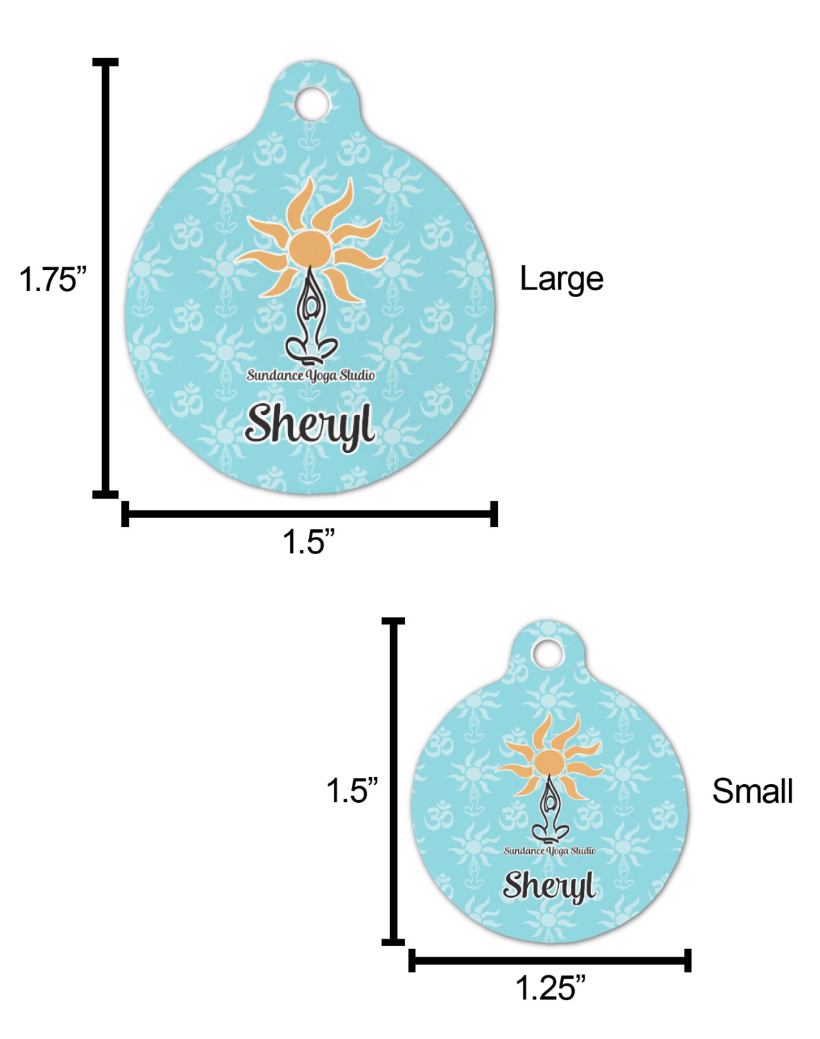 Go ahead; skip the monotony of plain pet ID tags with your very own, customized & personalized, round pet tag! This pet ID tag, fitting for both cats and dogs, will catch the eye of any onlooker (humans, canines, and felines, alike!) and accentuate your pet's individual personality.