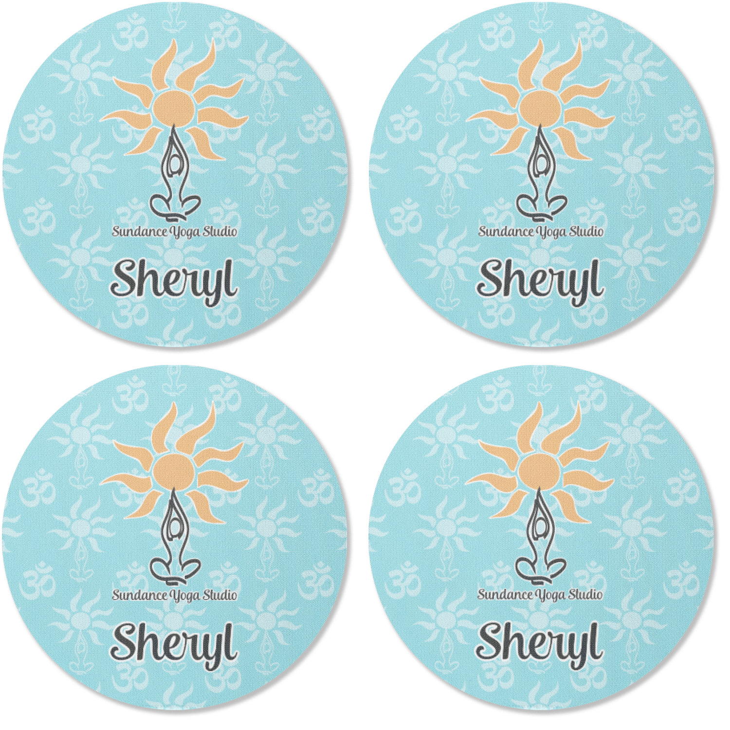 These drink coasters have a smooth, polyester top and a textured, rubber backing on its bottom. The non-slip rubber backing underneath works to keep any spills at bay. At 4 by 4 by 0.25 inches thick, these custom coasters are a suitable size for most drinkware. Your personalization is displayed atop the face of the cup coaster. We sell these rubber coasters in two different shapes: square and round. You can buy each shape as singulars or as a set of 4.