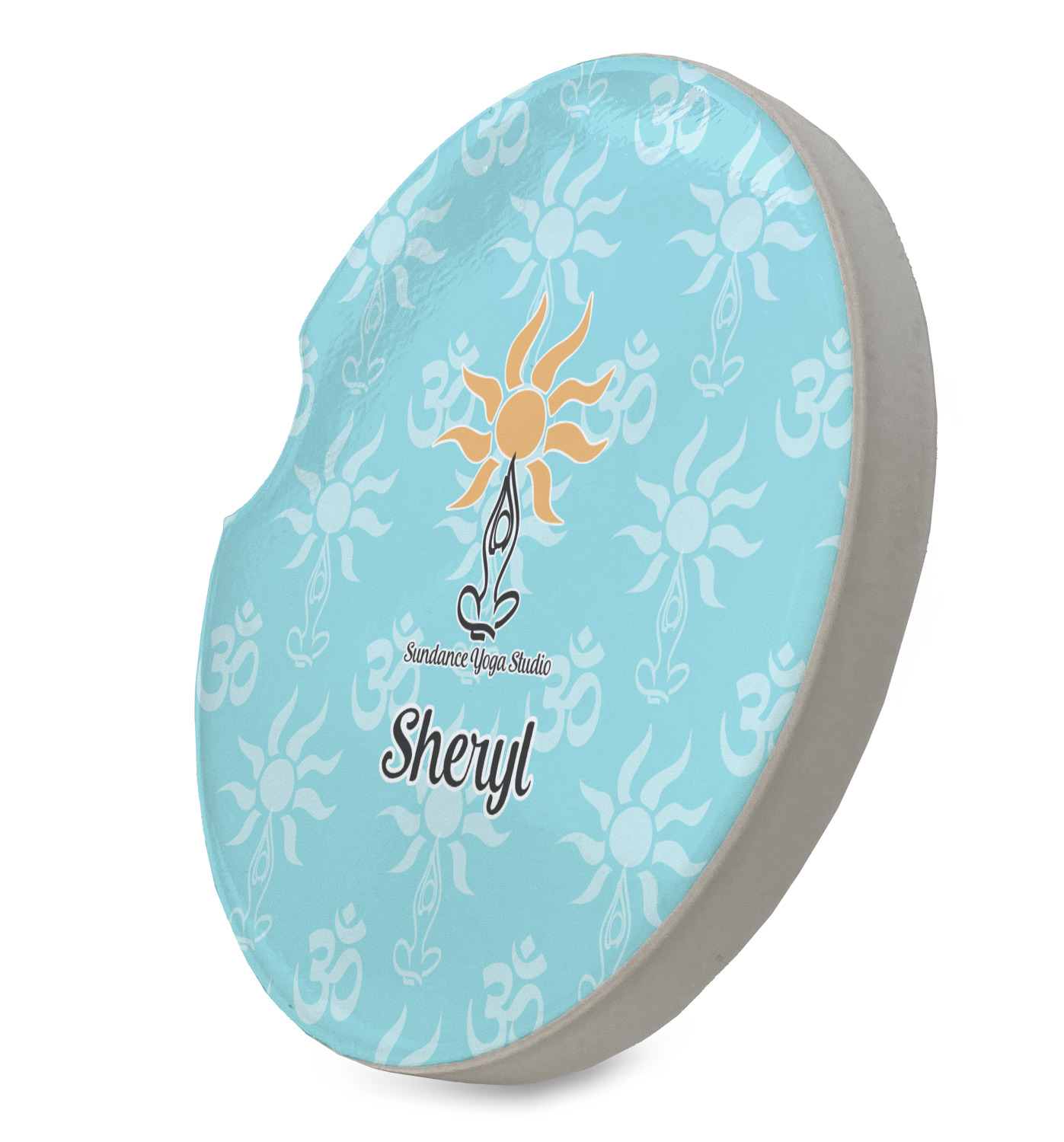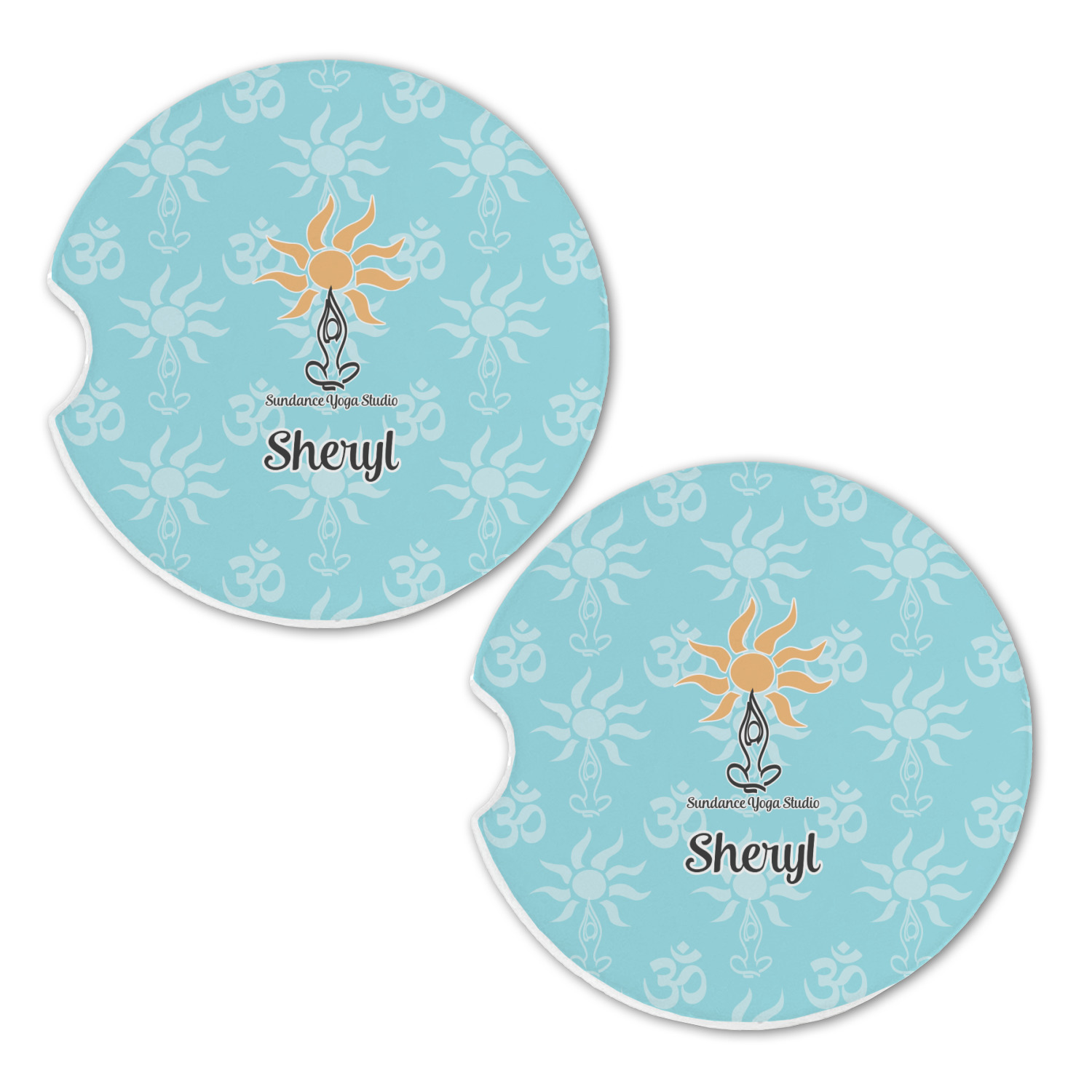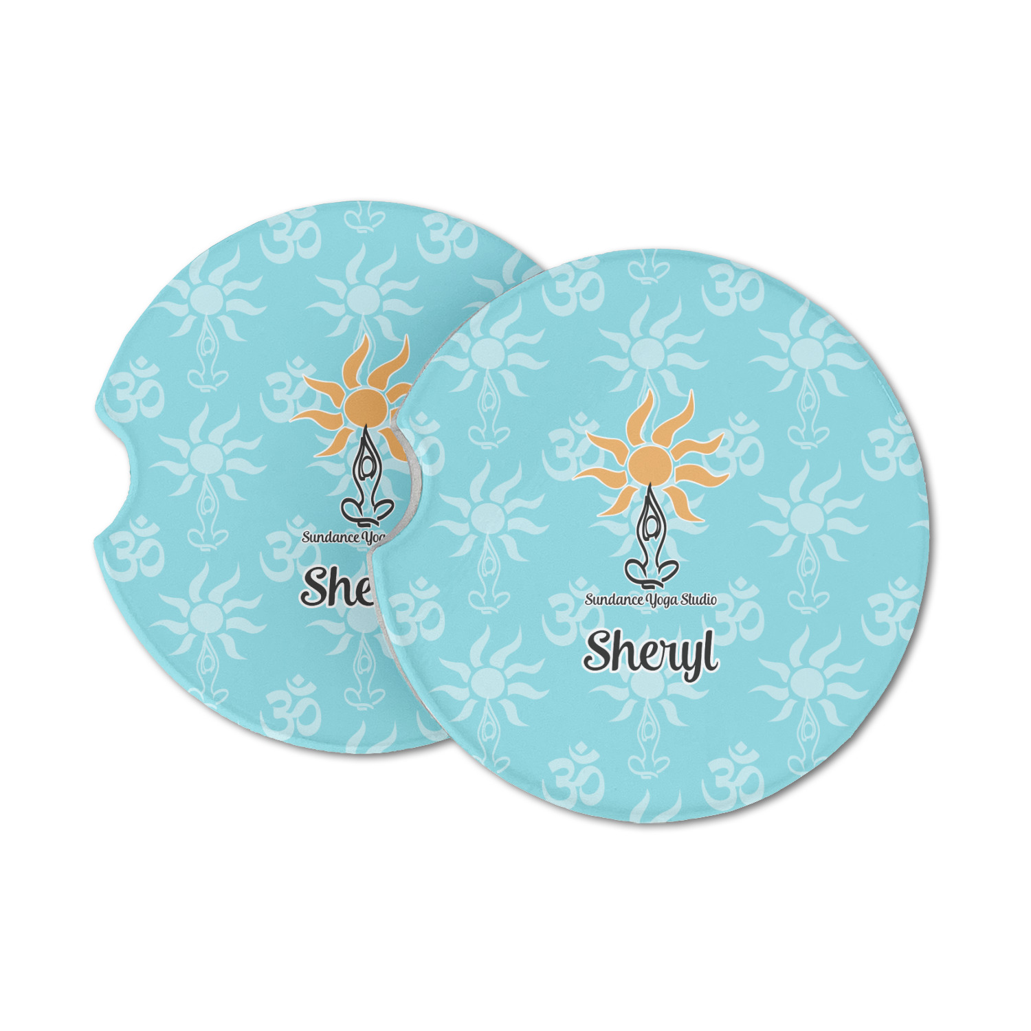 These sandstone coasters are round, robust, and feature a smoothed glossy side to exhibit your customized design. With a 2.5 inch diameter, these stone coasters will fit snugly inside most cup holders. This model also features a semi-circle shaped divot that allows for easy removal, despite the tight fit. You can purchase these car cup holder coasters in a pair, or singularly, depending on your needs.