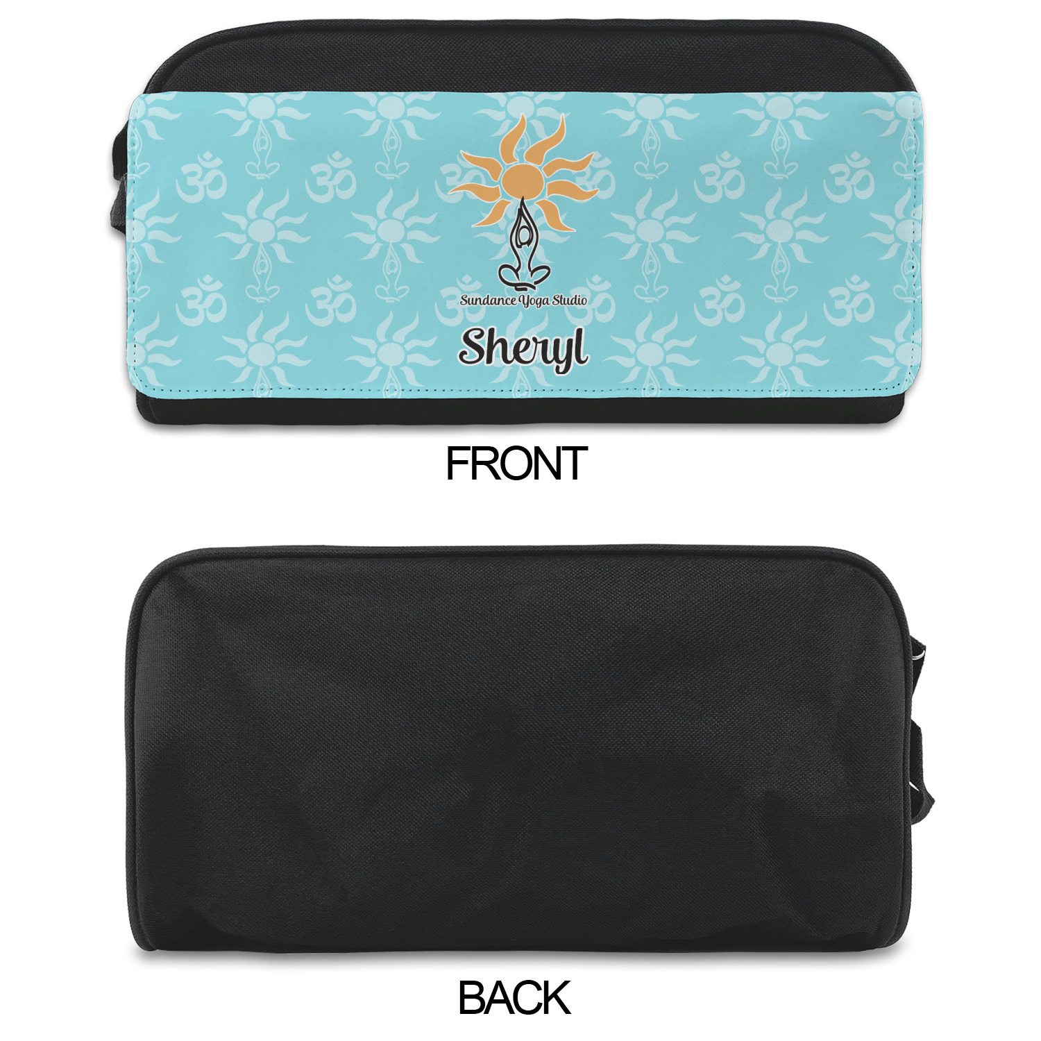 This calming design is dominantly a gorgeous light teal with the the Sundance logo, as well as the om symbol, repeating in the background. The main logo is prominently displayed front and center. The logo is a simple drawing of a figure doing the lotus pose with a sun rising above them. "Sundance Yoga Studio" is written beneath the logo. You personalization goes directly under the logo to create a finished design.