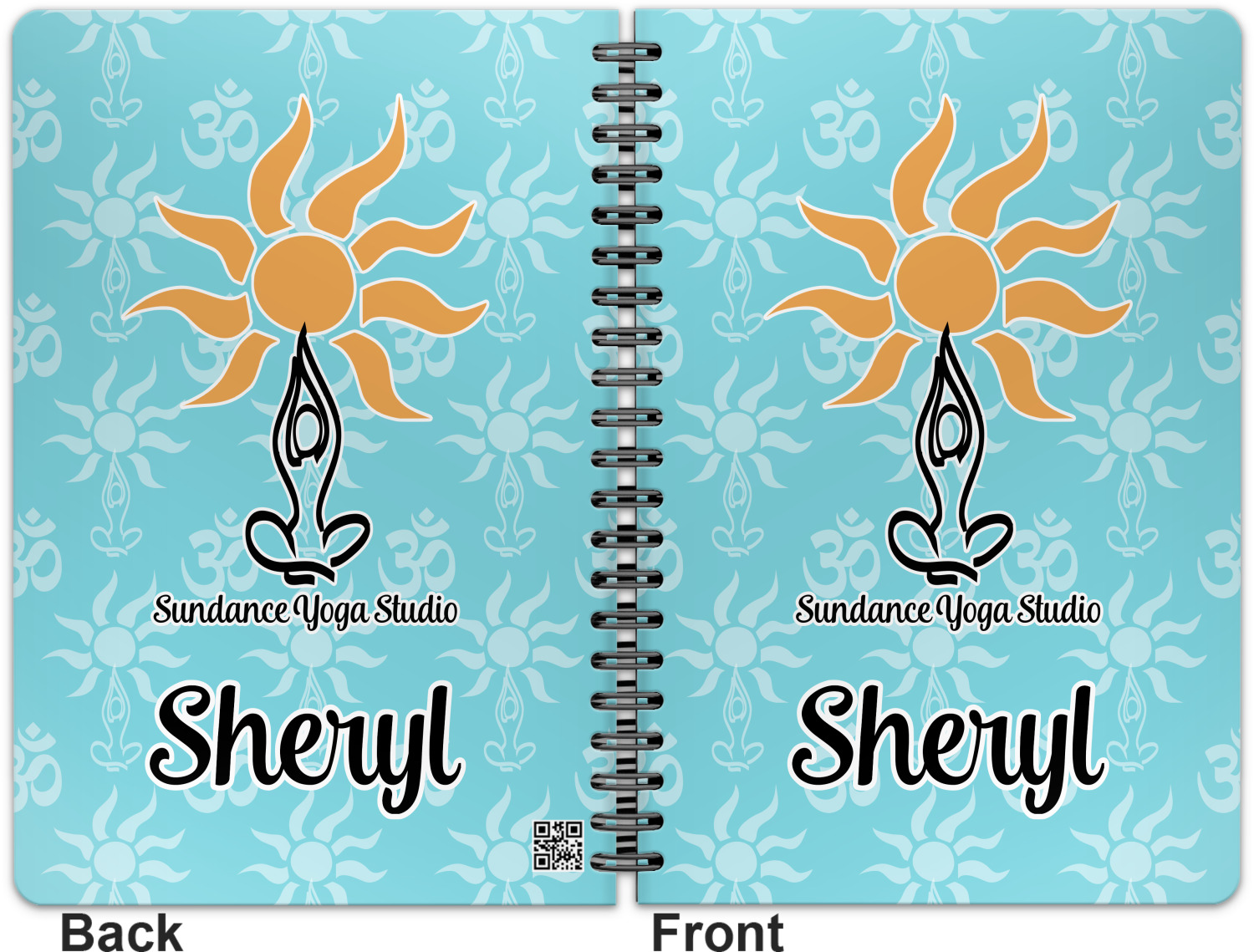 This spiral notebook includes 75 sheets of thick, ruled paper. The front and back of this custom notebook is made of a robust, laminate, plastic covering. We print your personalization on these two panels, underneath a glossy finish, which emphasizes the colors of your design. The two panels and the sheets of paper are held together by a sturdy, black coil. The paper within your bound notebook is perforated for easy, clean tearing.