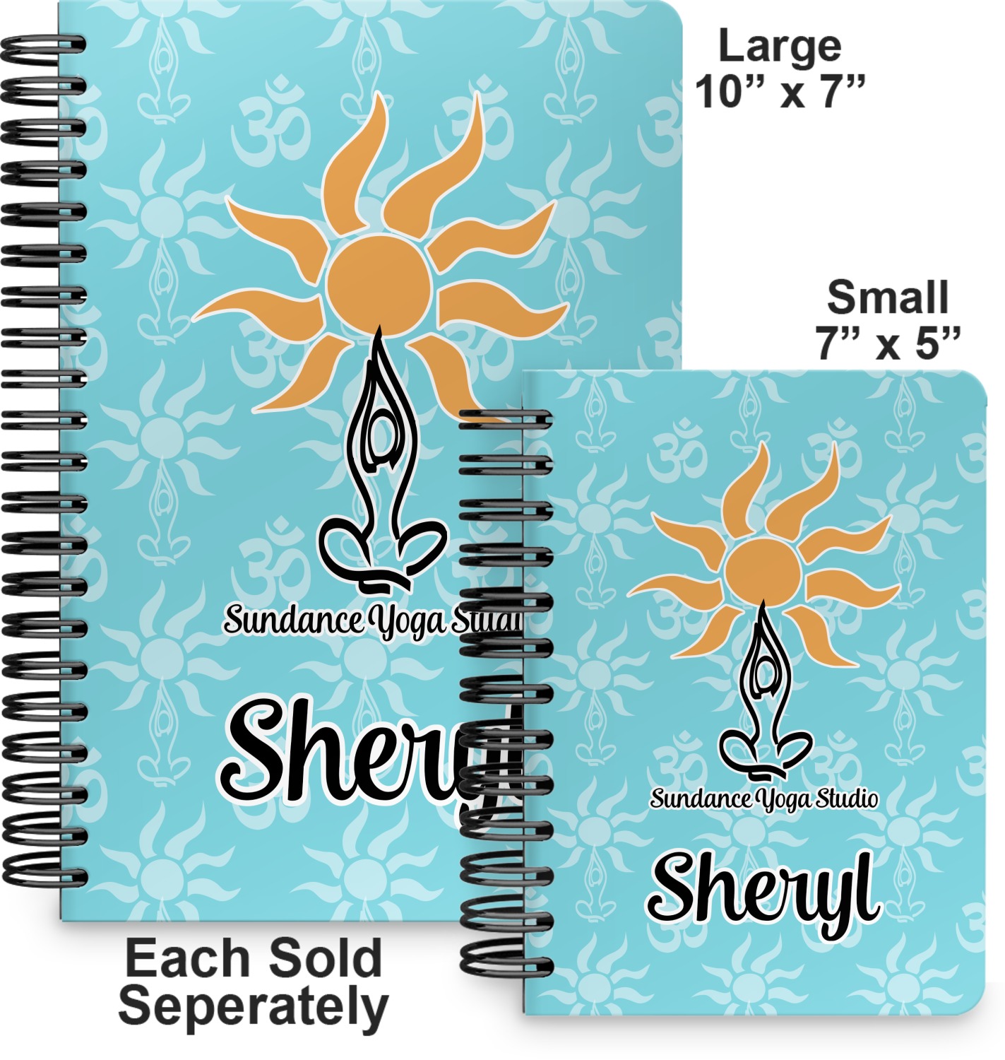 This spiral journal is available in two sizes. The first size is more suitable for a tote or purse and measures at 7" x 5". The second option is a bit larger, at 10" x 7", and is a better fit for a briefcase or backpack.