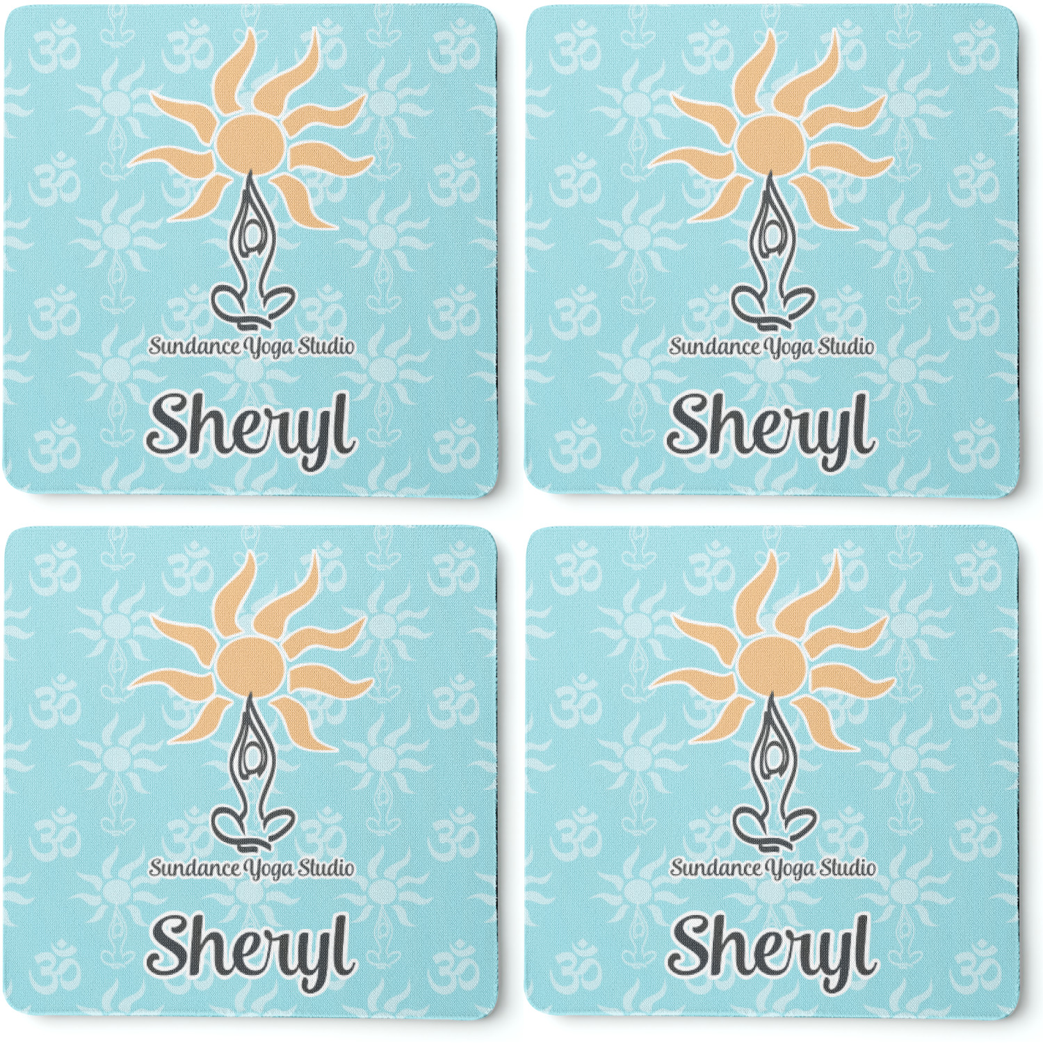 These drink coasters have a smooth, polyester top and a textured, rubber backing on its bottom. The non-slip rubber backing underneath works to keep any spills at bay. At 4 by 4 by 0.25 inches thick, these custom coasters are a suitable size for most drinkware. Your personalization is displayed atop the face of the cup coaster. We sell these rubber coasters in two different shapes: square and round. You can buy each shape as singulars or as a set of 4.