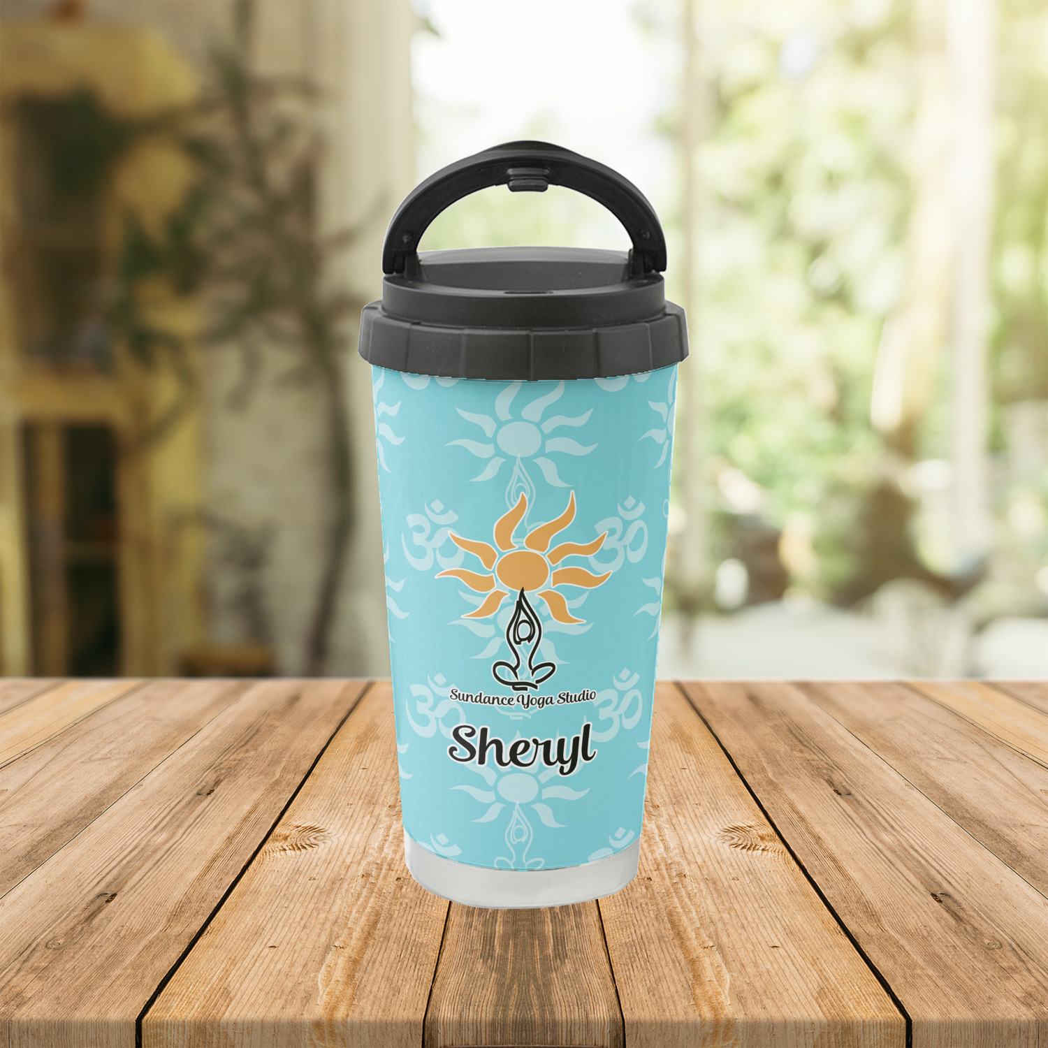 This sleek and tapered 16 oz stainless steel travel cup is a perfect fit in the hand. With the strip of visible stainless steel on the bottom, you'll be feeling classy!