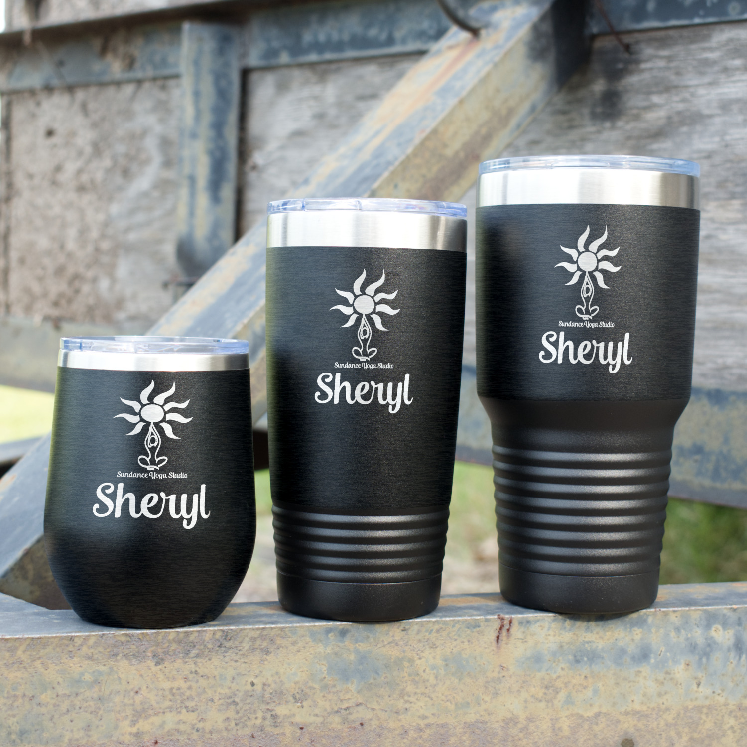 Design your wine tumbler with a cool graphic or quote. Even put your initials or monogram! These cups are laser engraved, which looks extra sharp on the metal tumbler.
