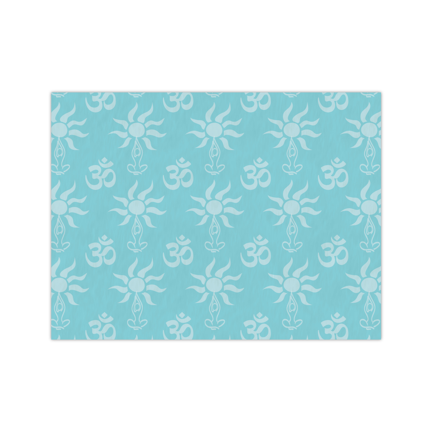 This calming design is dominantly a gorgeous light teal with the the Sundance logo, as well as the om symbol, repeating in the background. The main logo is prominently displayed front and center. The logo is a simple drawing of a figure doing the lotus pose with a sun rising above them. "Sundance Yoga Studio" is written beneath the logo. You personalization goes directly under the logo to create a finished design.