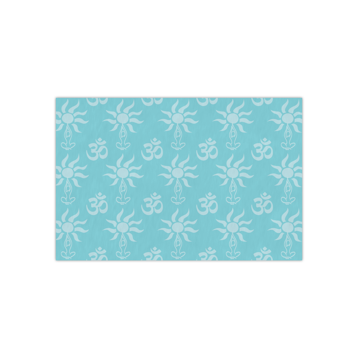 This calming design is dominantly a gorgeous light teal with the the Sundance logo, as well as the om symbol, repeating in the background. The main logo is prominently displayed front and center. The logo is a simple drawing of a figure doing the lotus pose with a sun rising above them. "Sundance Yoga Studio" is written beneath the logo. You personalization goes directly under the logo to create a finished design.