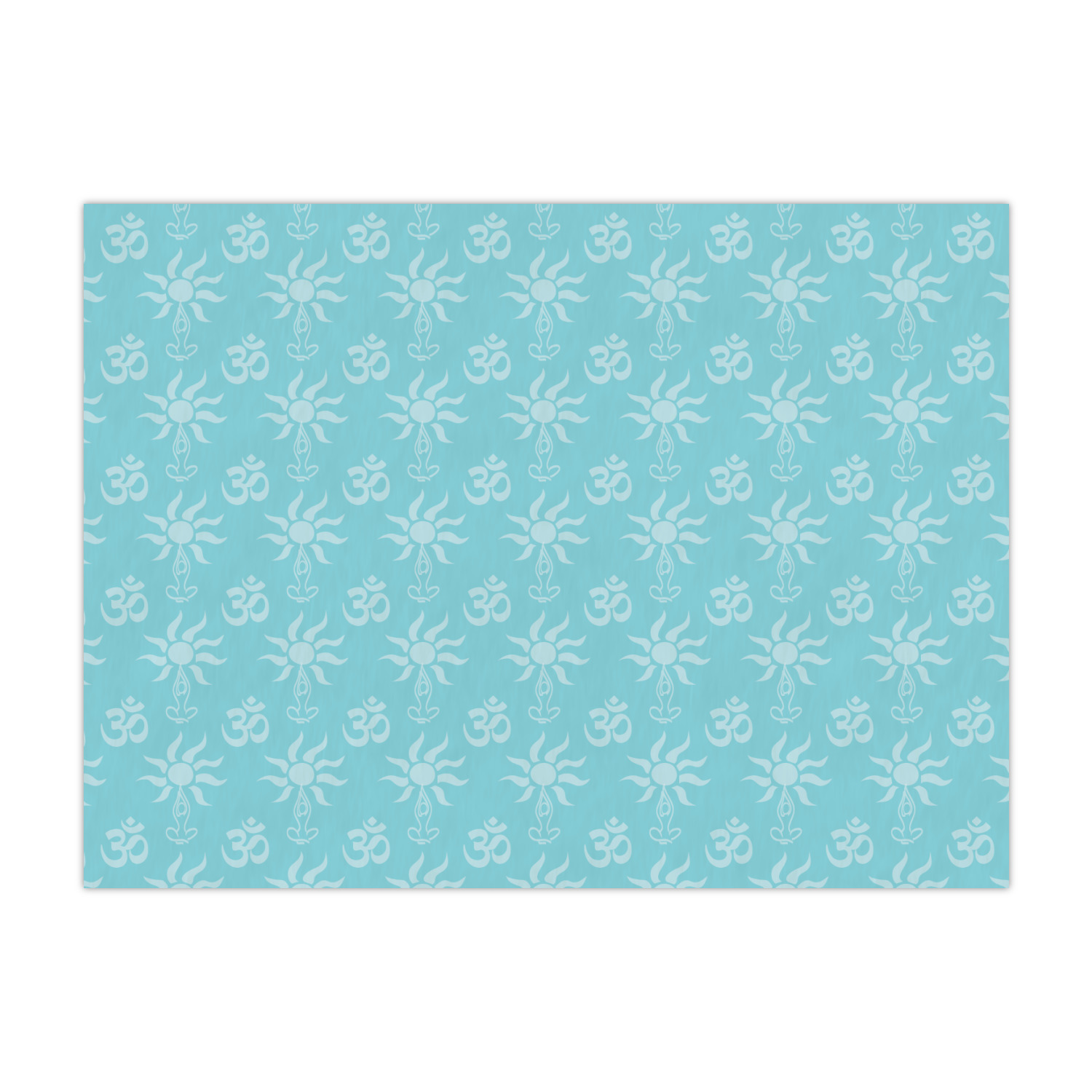 This calming design is dominantly a gorgeous light teal with the the Sundance logo, as well as the om symbol, repeating in the background. The main logo is prominently displayed front and center. The logo is a simple drawing of a figure doing the lotus pose with a sun rising above them. "Sundance Yoga Studio" is written beneath the logo. You personalization goes directly under the logo to create a finished design.