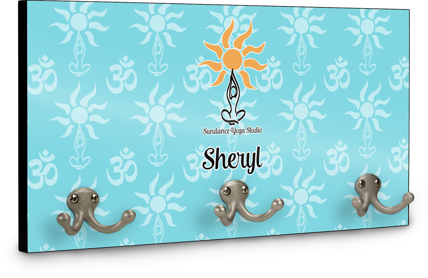 This coat rack is the perfect way to add some personality to your wall or entryway. The board is made of a strong maple that is approximately 16" x 8". The three 2-prong hooks are a sturdy metal that have three screws attaching them to the board. Your design is printed right onto the front of the board while the back and sides are a simple black.