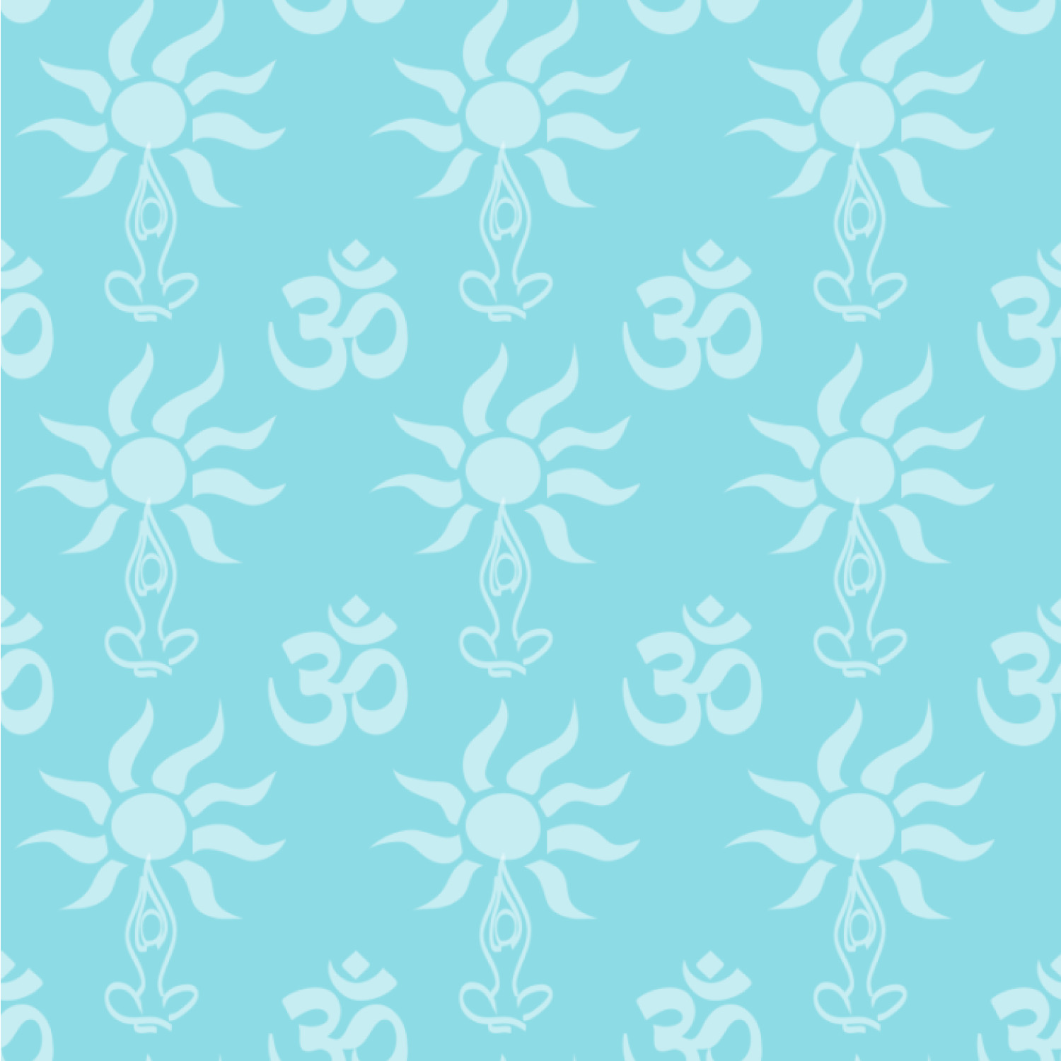 This calming design is dominantly a gorgeous light teal with the the Sundance logo, as well as the om symbol, repeating in the background. The main logo is prominently displayed front and center. The logo is a simple drawing of a figure doing the lotus pose with a sun rising above them. "Sundance Yoga Studio" is written beneath the logo. You personalization goes directly under the logo to create a finished design.