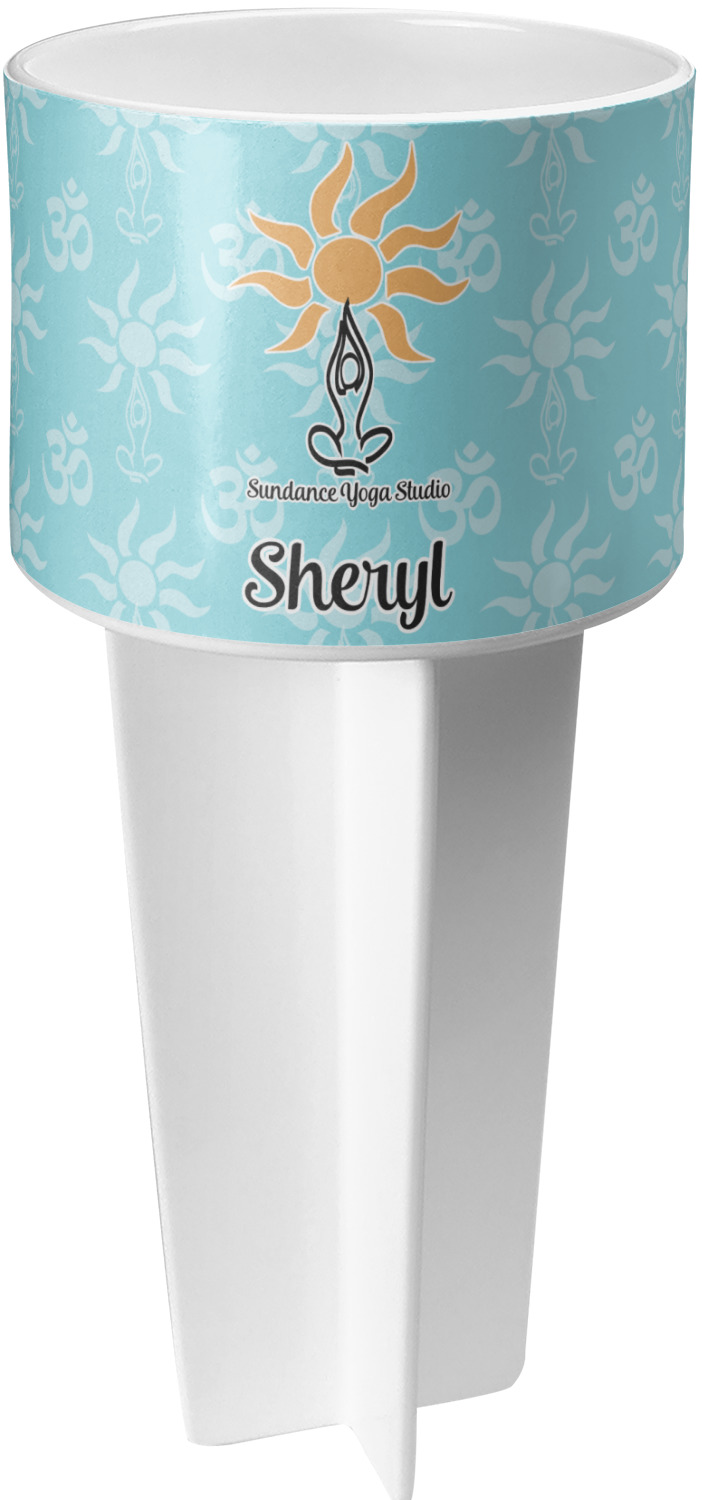 This cup holder has a large stake at its bottom that anchors it to the sand or ground below, while the cup holder rests above the stake. The entire drink holder is made of durable plastic and displays your customization around the cup holder portion. We sell these personalized beach spikers in two different colors: black and white.