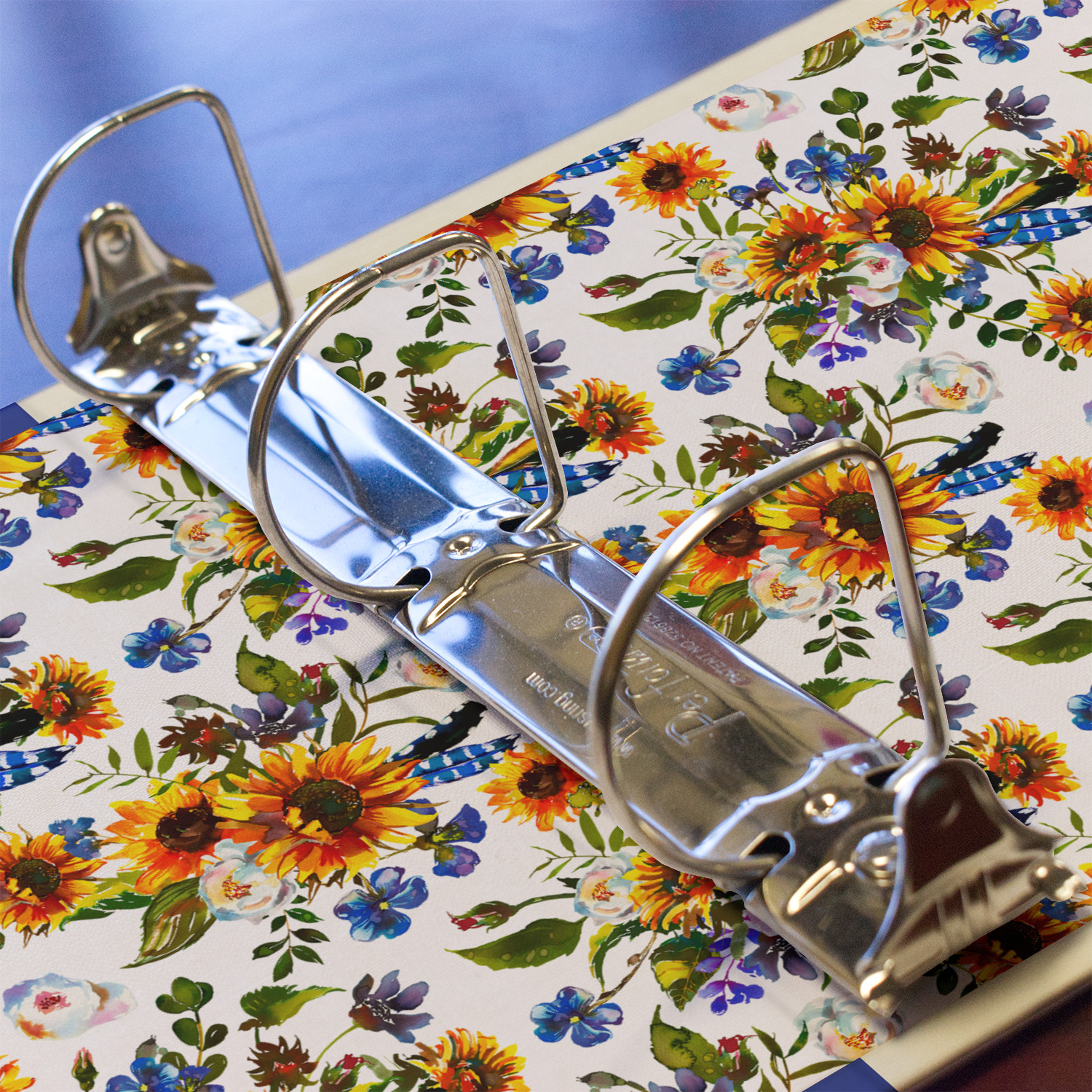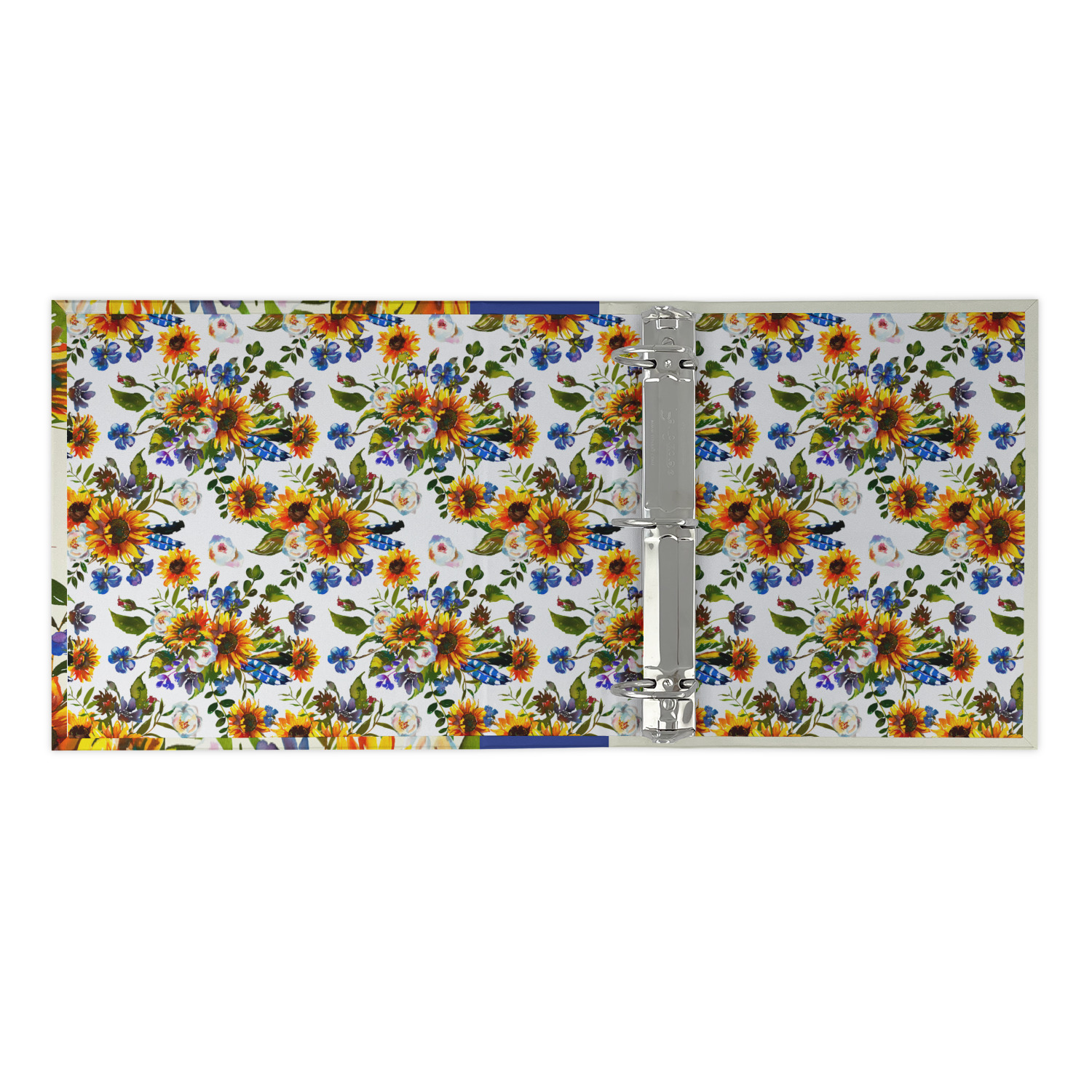 Made from a sturdy cardboard base with a full high quality canvas textured vinyl wrap with the design of your choice. Unlike our standard 3-ring binder with the full wrap design your artwork wraps from the front and back and into the inside of the binder.