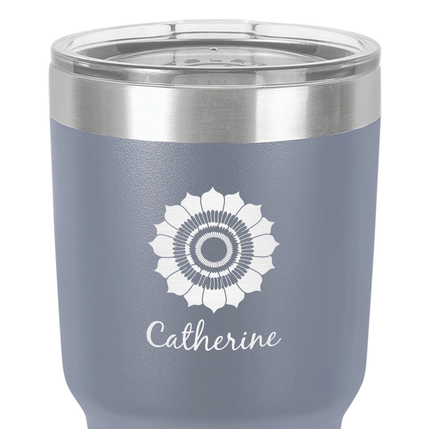 With our personalized 30 oz double wall stainless steel tumblers, you'll never have to settle for a plain, boring tumbler again! These tumblers will be a wonderful addition to your drinkware collection and will make those long commutes much brighter. Personalize one for yourself, or give these personalized tumblers as a gift to relatives, friends, or coworkers!