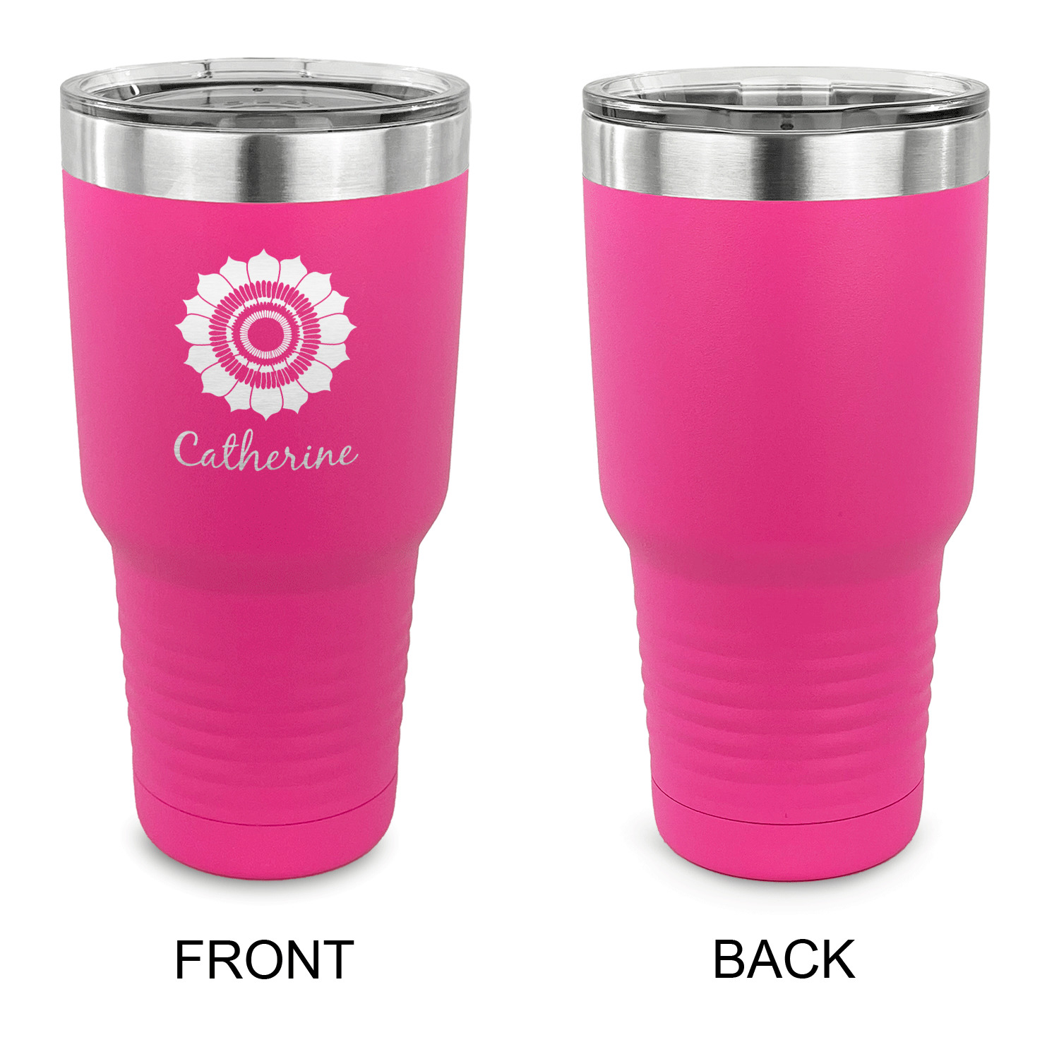 With our personalized 30 oz double wall stainless steel tumblers, you'll never have to settle for a plain, boring tumbler again! These tumblers will be a wonderful addition to your drinkware collection and will make those long commutes much brighter. Personalize one for yourself, or give these personalized tumblers as a gift to relatives, friends, or coworkers!