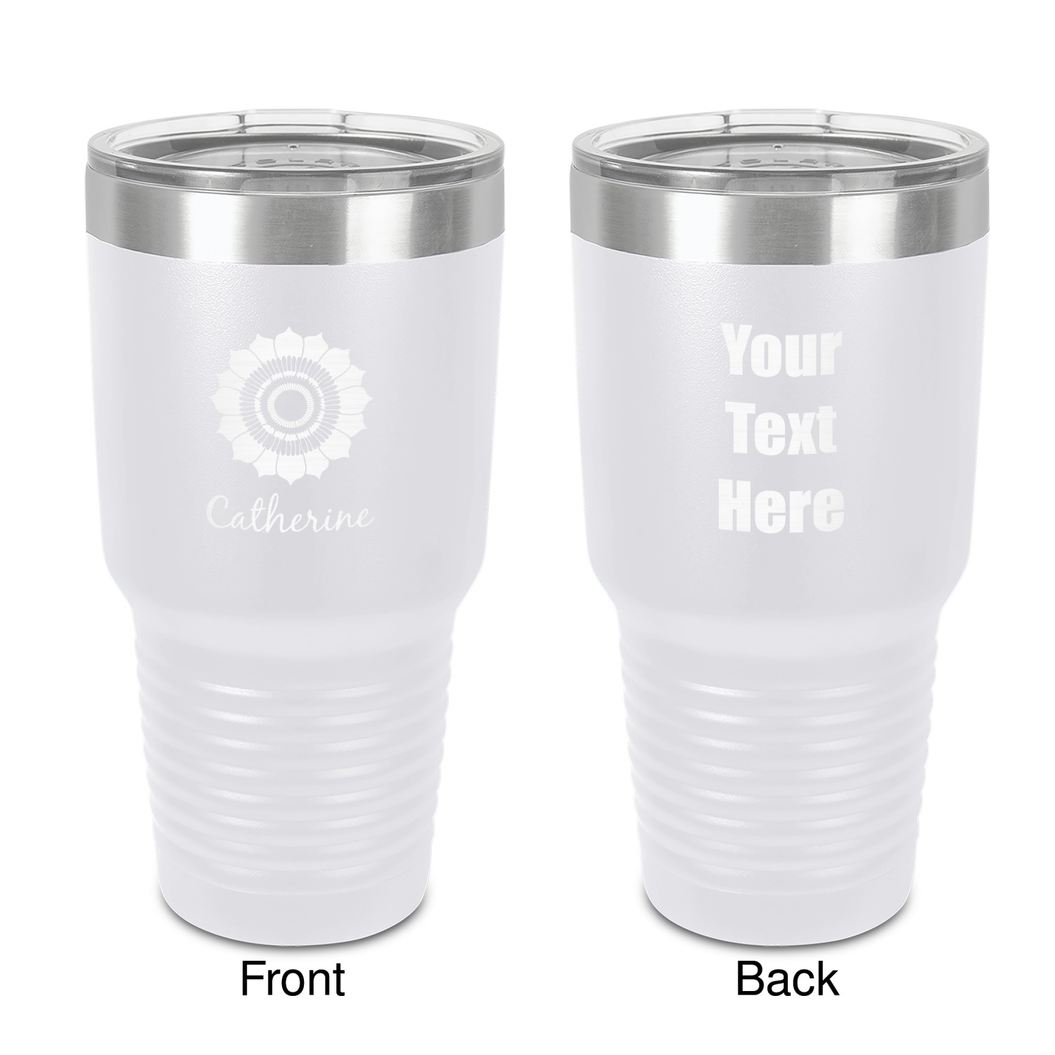 With our personalized 30 oz double wall stainless steel tumblers, you'll never have to settle for a plain, boring tumbler again! These tumblers will be a wonderful addition to your drinkware collection and will make those long commutes much brighter. Personalize one for yourself, or give these personalized tumblers as a gift to relatives, friends, or coworkers!
