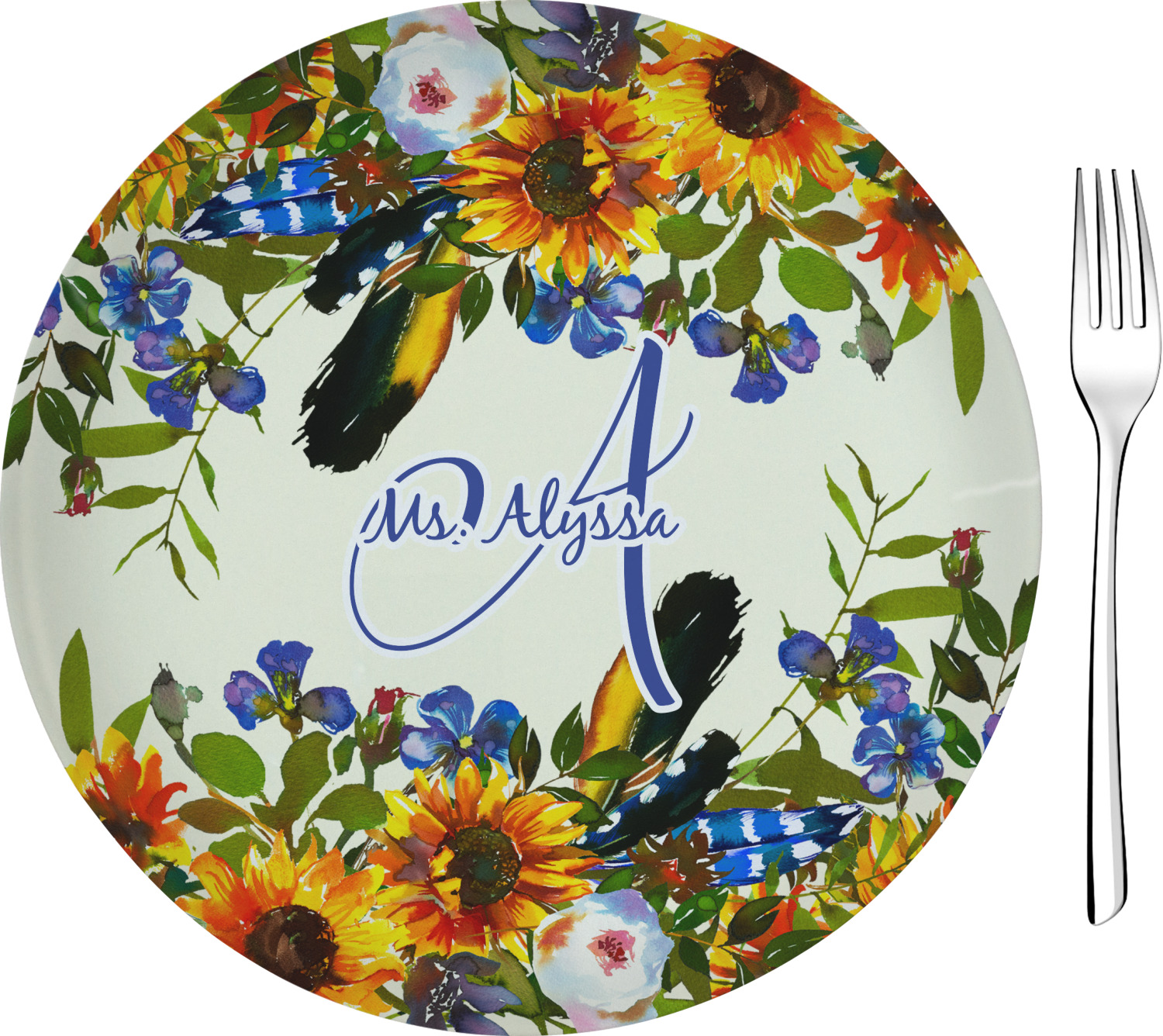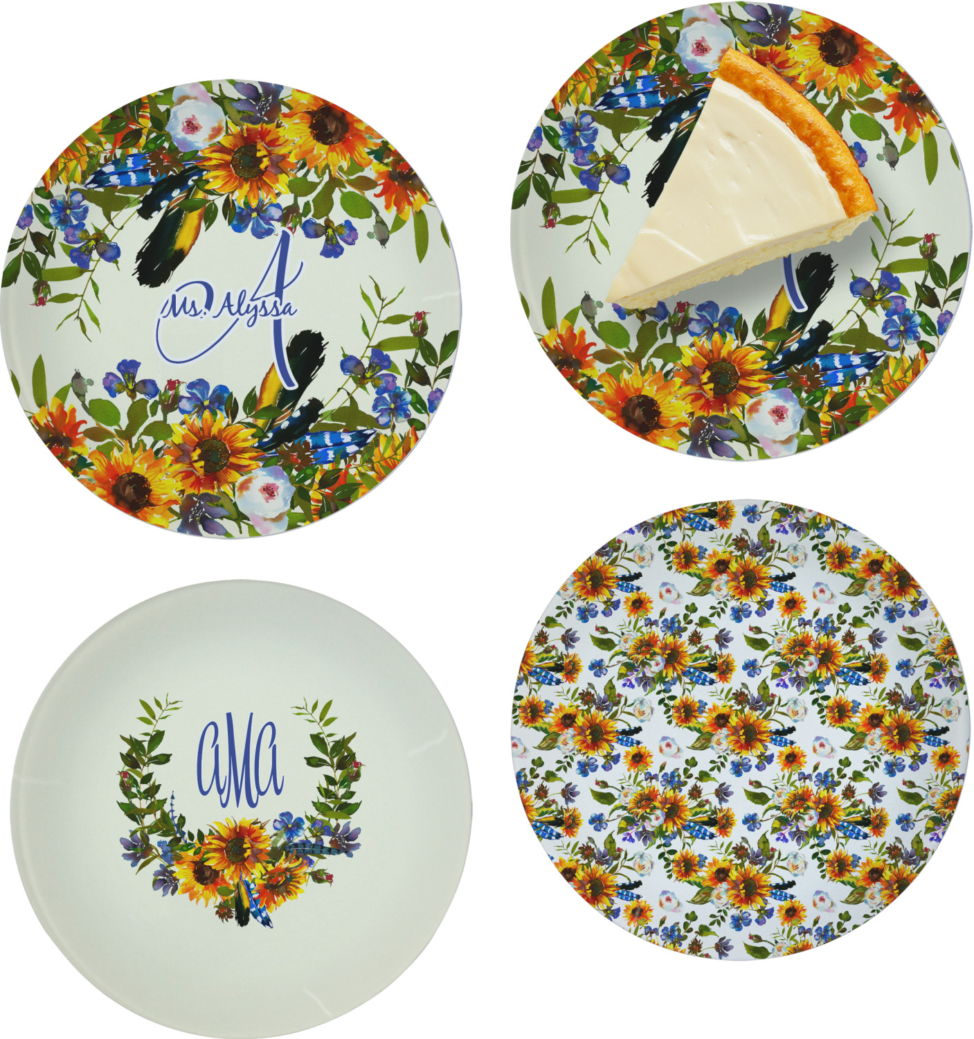 This sunflowers design template is simply beautiful. We chose to personalize it with a name & initial for the main design. We used the blue from the flower in the design and a really pale yellow background.