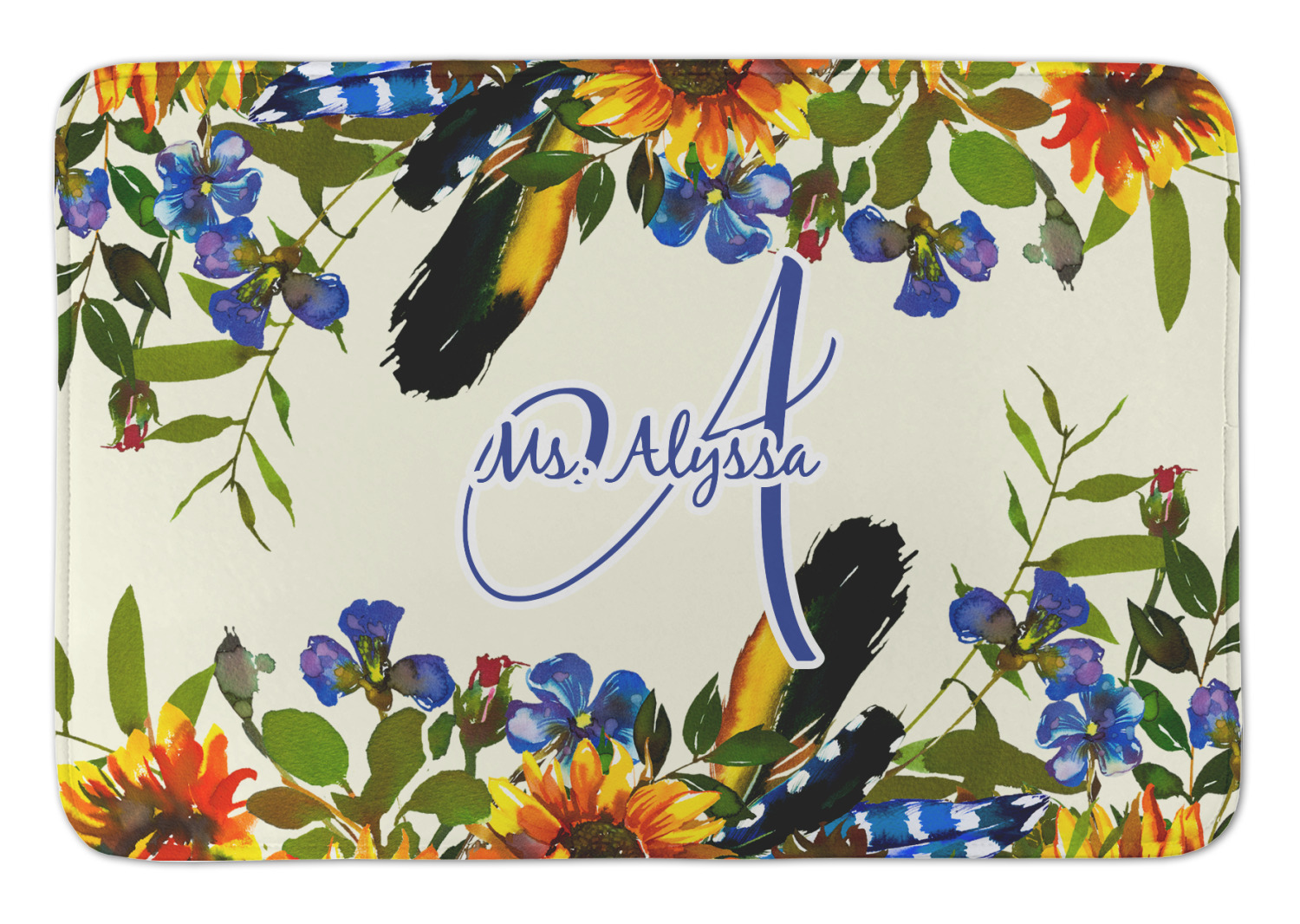 This sunflowers design template is simply beautiful. We chose to personalize it with a name & initial for the main design. We used the blue from the flower in the design and a really pale yellow background.