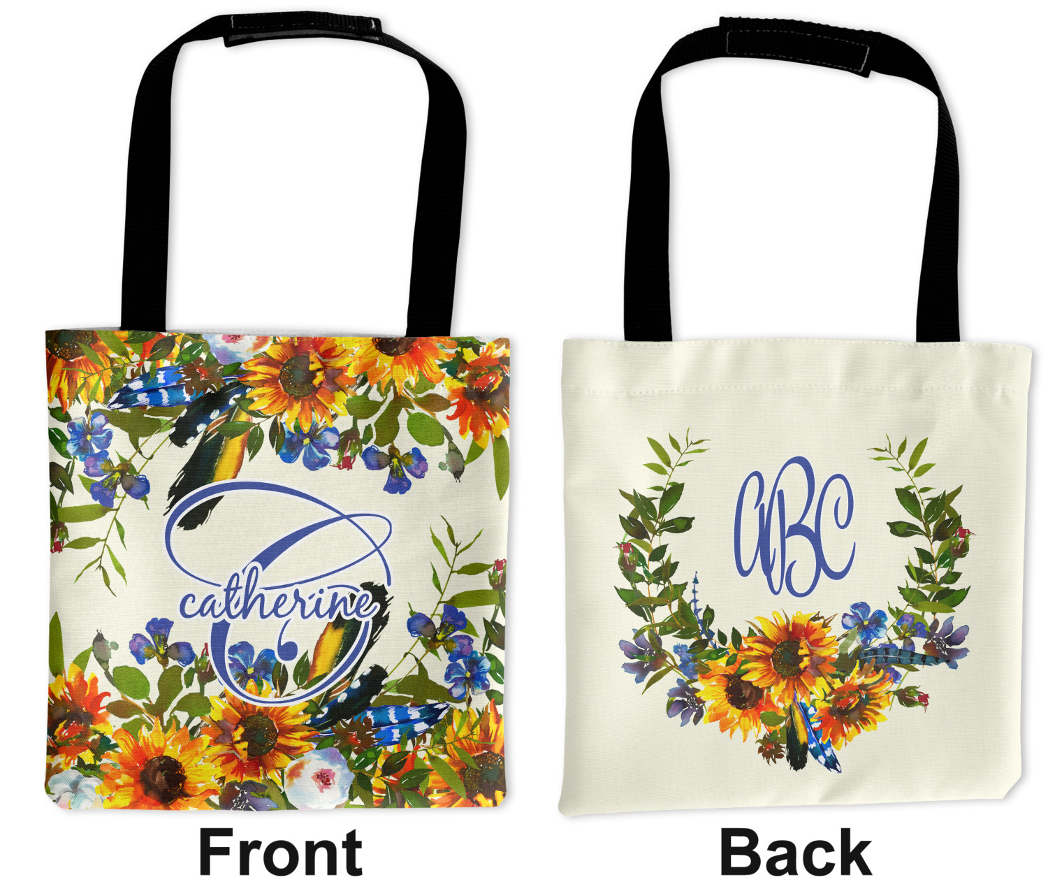 This sunflowers design template is simply beautiful. We chose to personalize it with a name & initial for the main design. We used the blue from the flower in the design and a really pale yellow background.