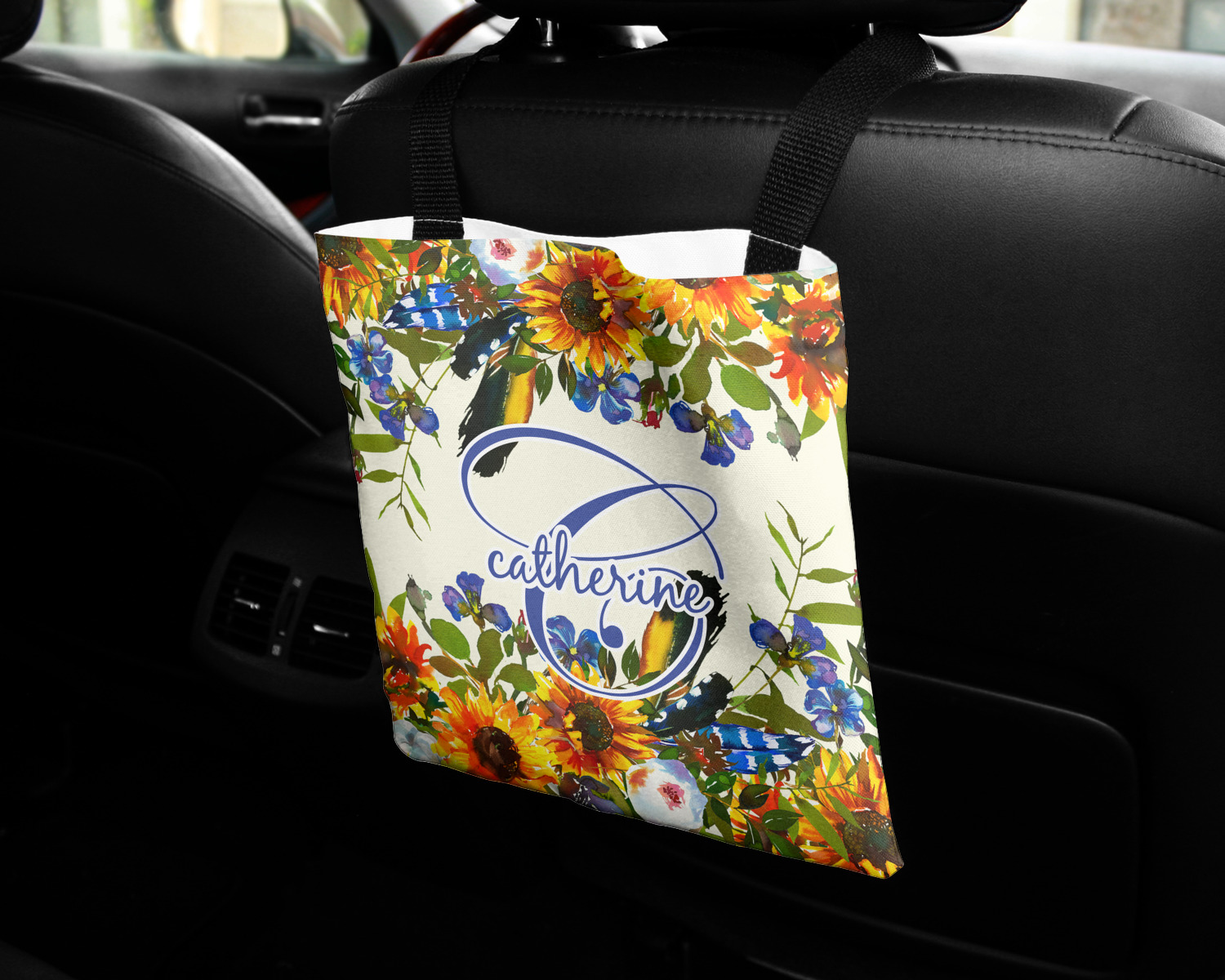 These car back seat organizers are sturdy tote-like bags, fabricated from a robust polyester, and features a single handle on the back side. The strap features an attachable velcro for easy attachment to headrests, grocery carts, car seats, and more. Simply undo the velcro, loop the strap around the headrest, reattach the velcro, and let the organizer hang from the front seat. These car organizers are the perfect means of increasing your backseat's legroom, while storing multiple items in one place for better accessibility. Each car back seat organizer measures at 10 by 10 inches, and features your personalized design printed across its front and back.