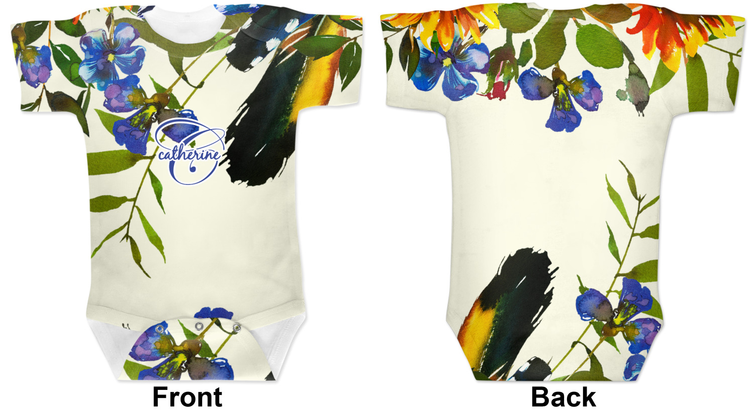 These cute baby bodysuits are made of stretchy, soft-to-the-touch polyester, making them very comfortable for your baby. These baby bodysuits also have snaps on the bottom to give easy access during changing times. Your personalization covers the entirety of this custom baby bodysuit, but the interior is white in color. As these are unisex baby bodysuits, they will work perfectly as baby girl bodysuits and baby boy bodysuits!