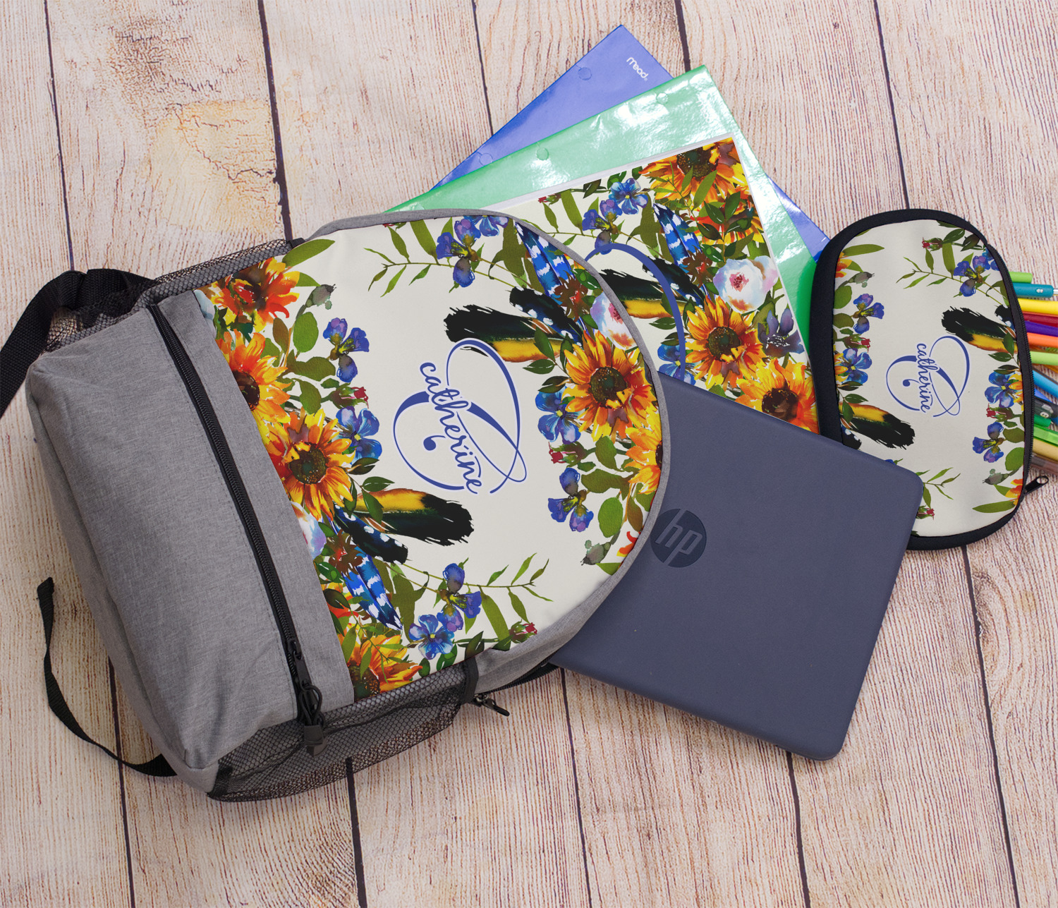 This sunflowers design template is simply beautiful. We chose to personalize it with a name & initial for the main design. We used the blue from the flower in the design and a really pale yellow background.