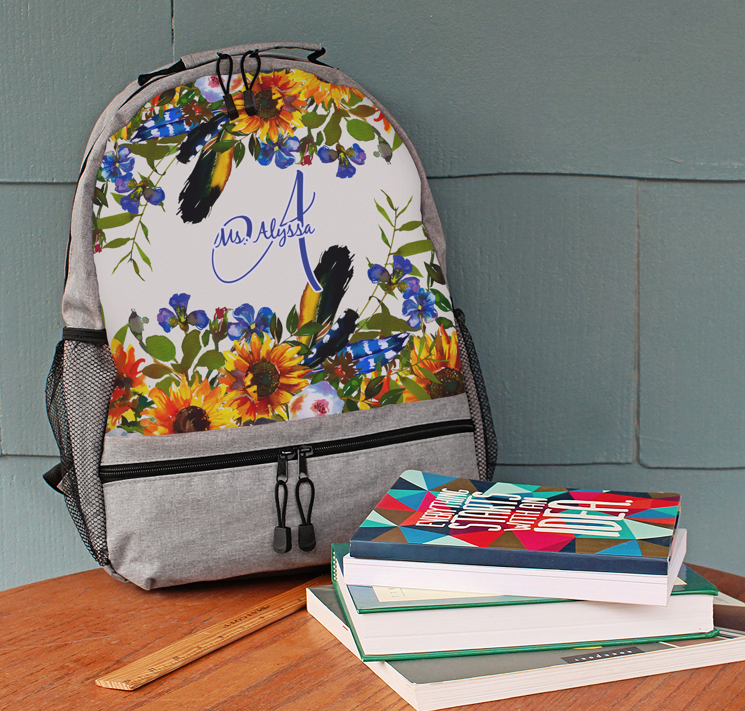 This sunflowers design template is simply beautiful. We chose to personalize it with a name & initial for the main design. We used the blue from the flower in the design and a really pale yellow background.