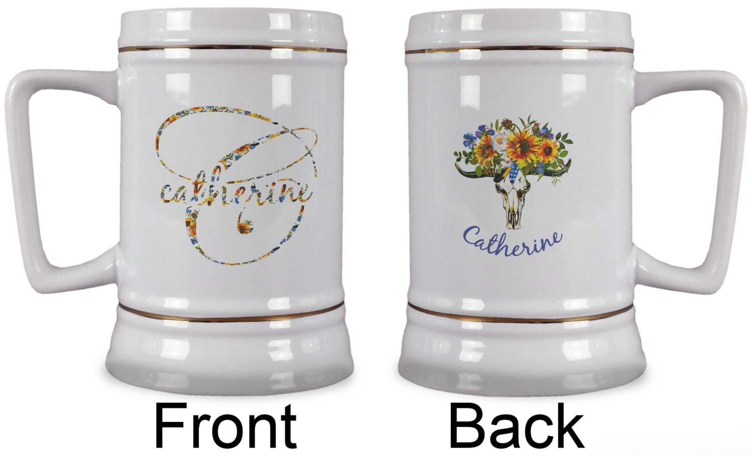Your favorite beer will taste even better when you drink it from your customized beer stein! These beautifully crafted ceramic beer steins also make great personalized gifts, especially for beer connoisseurs. They also make great gifts for birthdays, holidays, bachelor parties, anniversaries, father's day, or you can just purchase one for yourself!