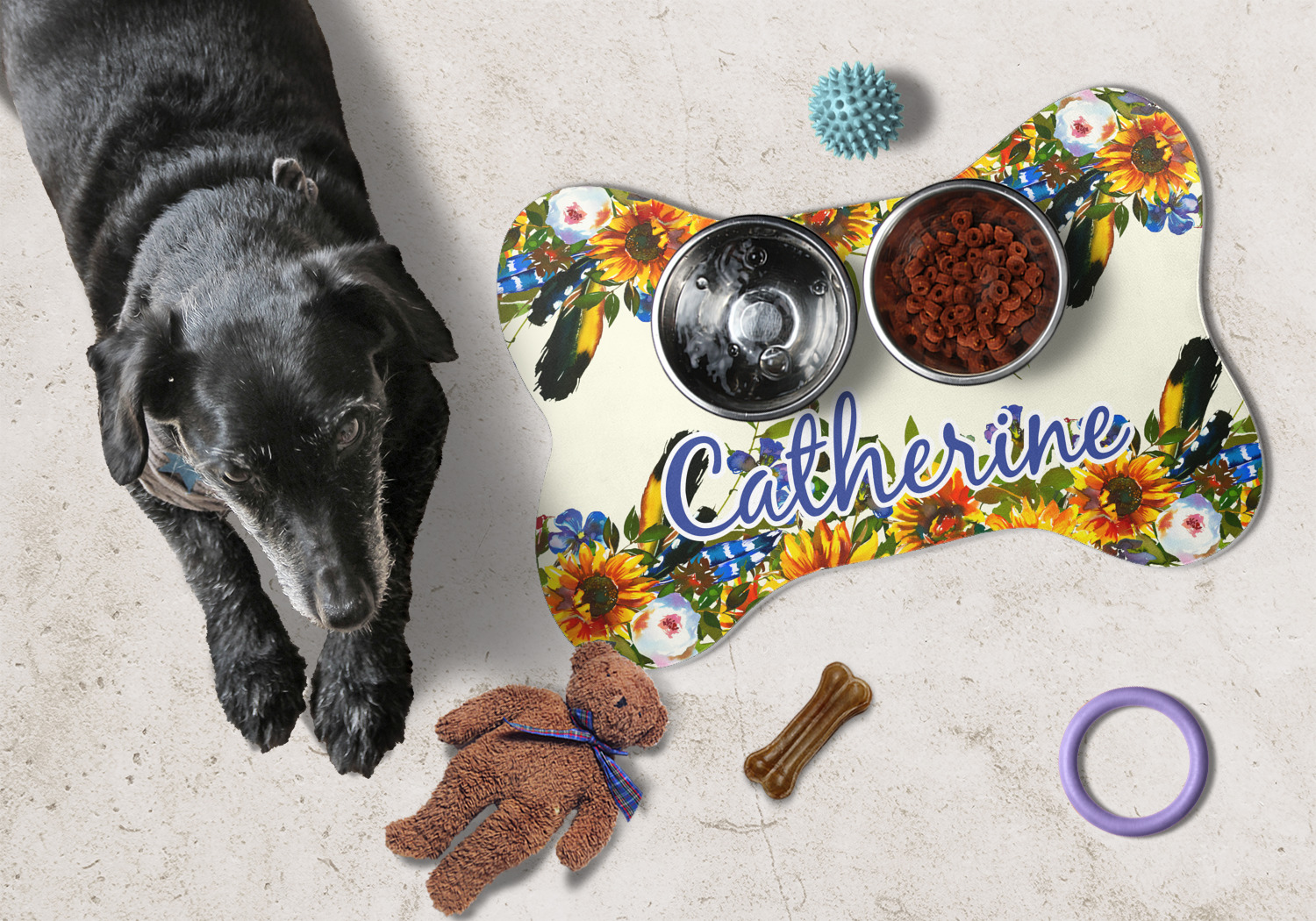 If you are purchasing a pet food mat, consider a customized dog bowl, dog collar, a bone-shaped dog tag, or any other pet supplies to match! Check out our Pet Accessories category for even more options! Craft a design that you want to extend to your eating area? Try our Home and Garden category for kitchen decor options!