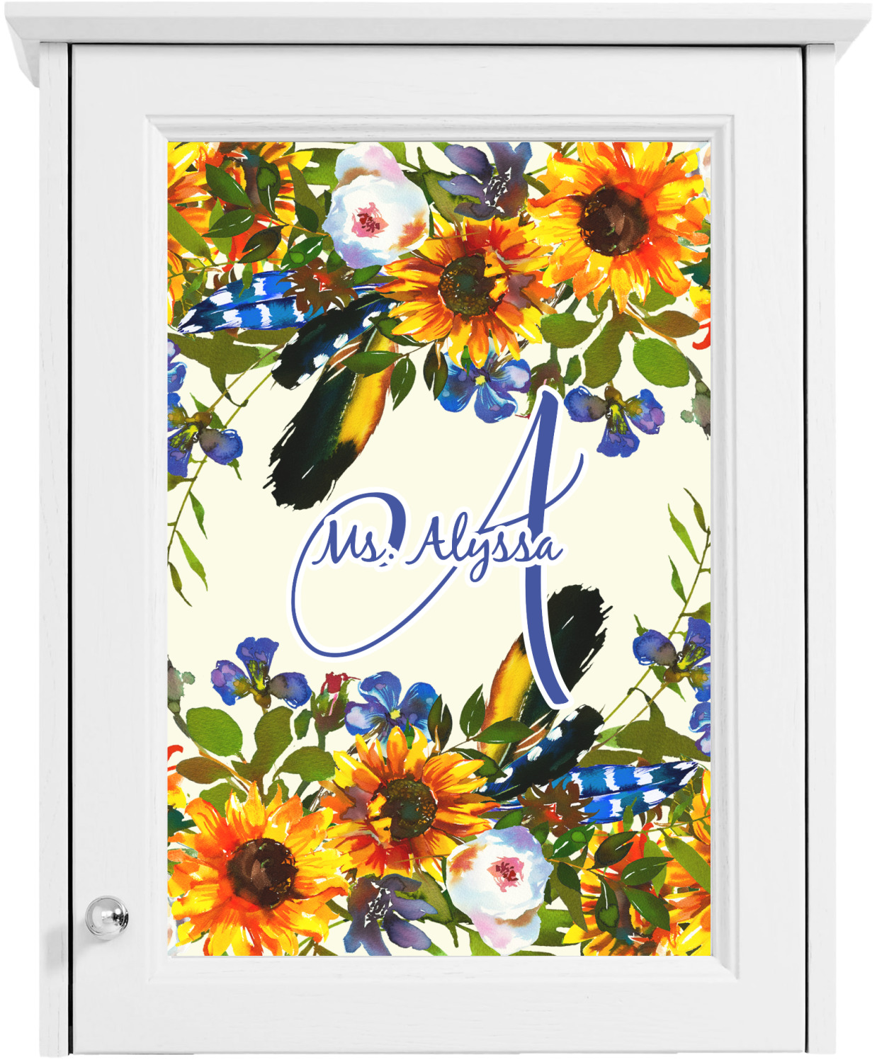 This sunflowers design template is simply beautiful. We chose to personalize it with a name & initial for the main design. We used the blue from the flower in the design and a really pale yellow background.