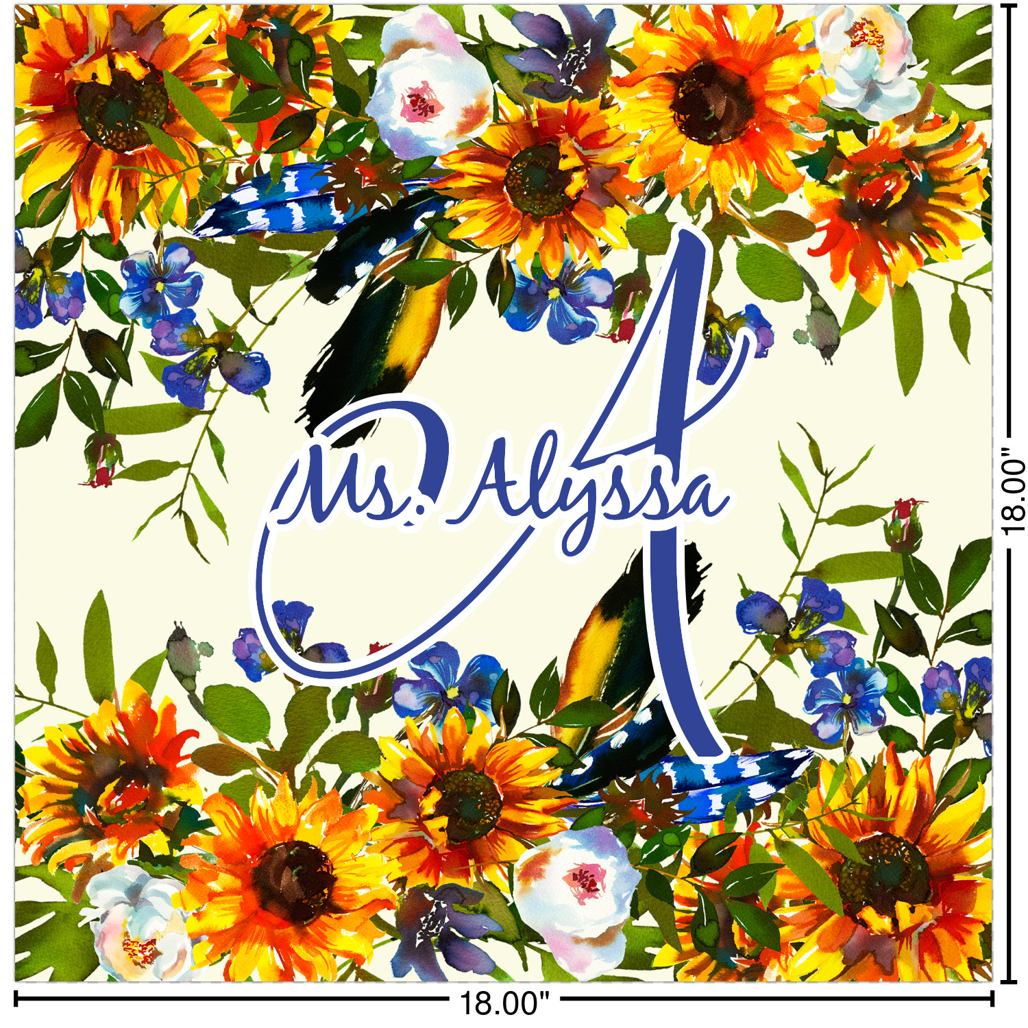 This sunflowers design template is simply beautiful. We chose to personalize it with a name & initial for the main design. We used the blue from the flower in the design and a really pale yellow background.