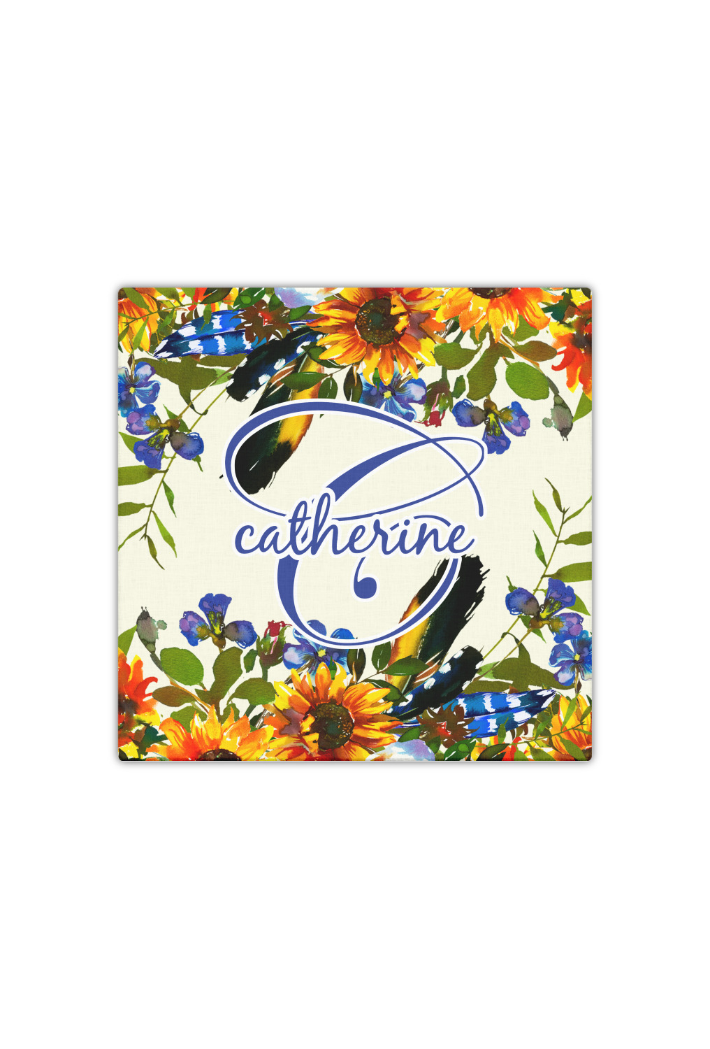 This sunflowers design template is simply beautiful. We chose to personalize it with a name & initial for the main design. We used the blue from the flower in the design and a really pale yellow background.