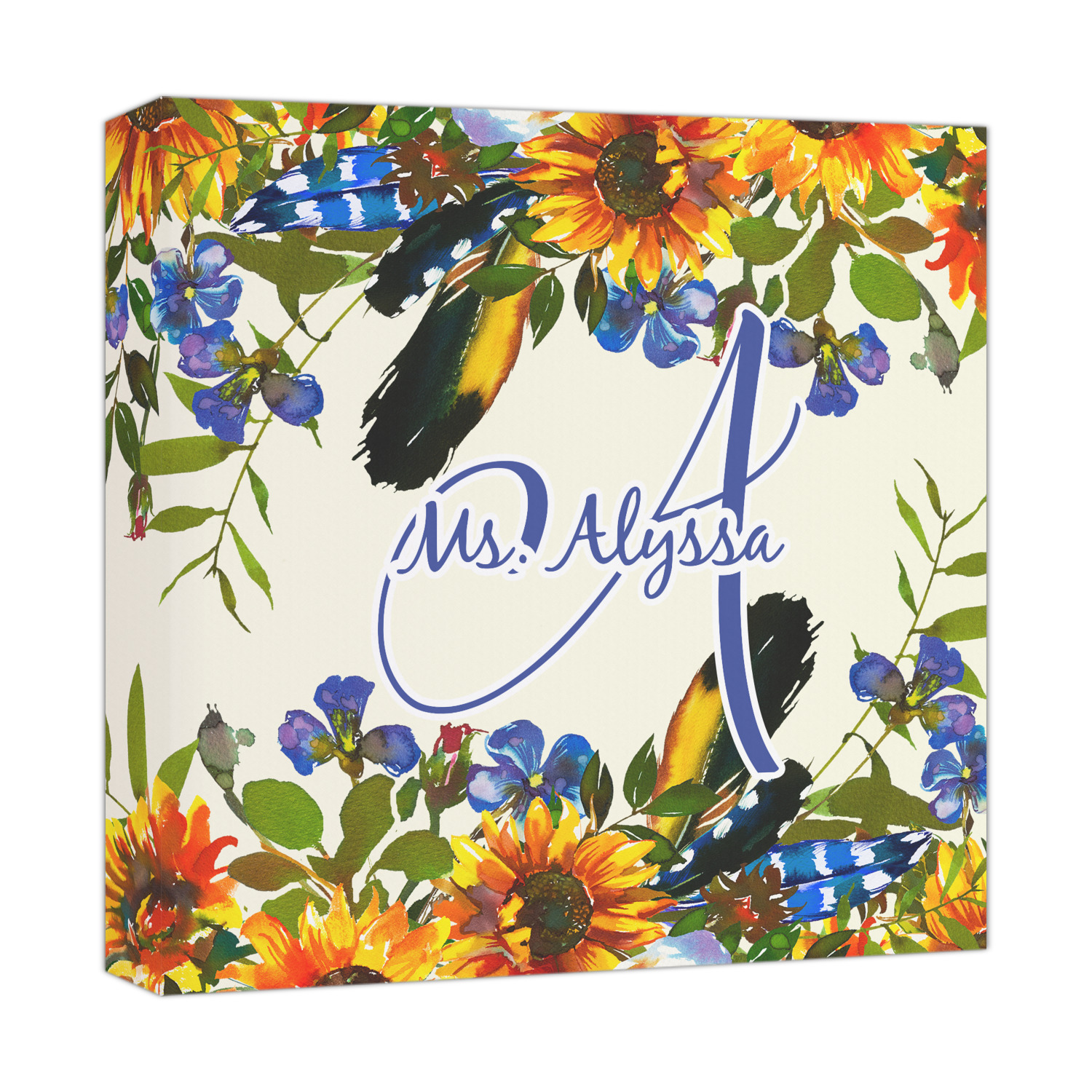 This sunflowers design template is simply beautiful. We chose to personalize it with a name & initial for the main design. We used the blue from the flower in the design and a really pale yellow background.