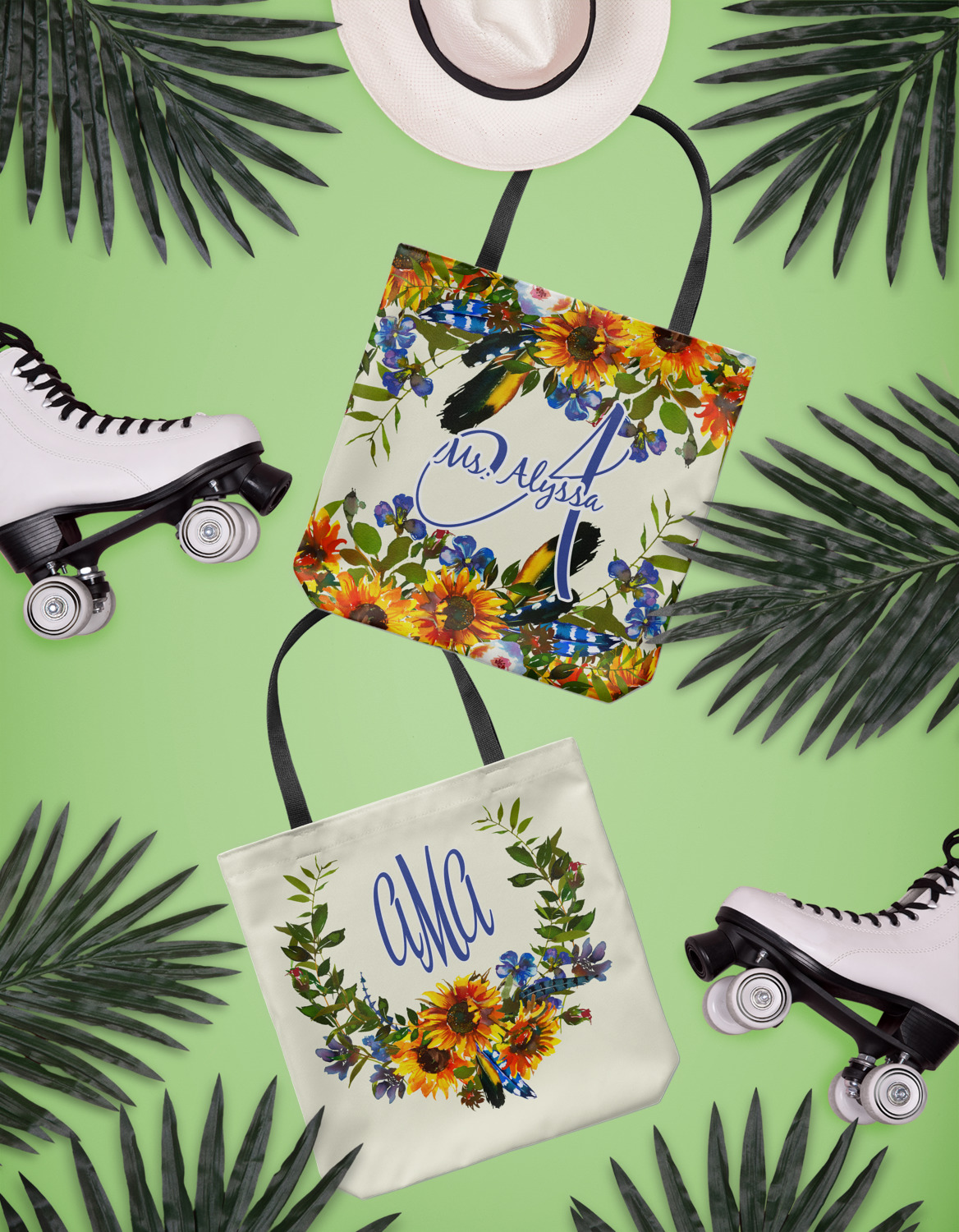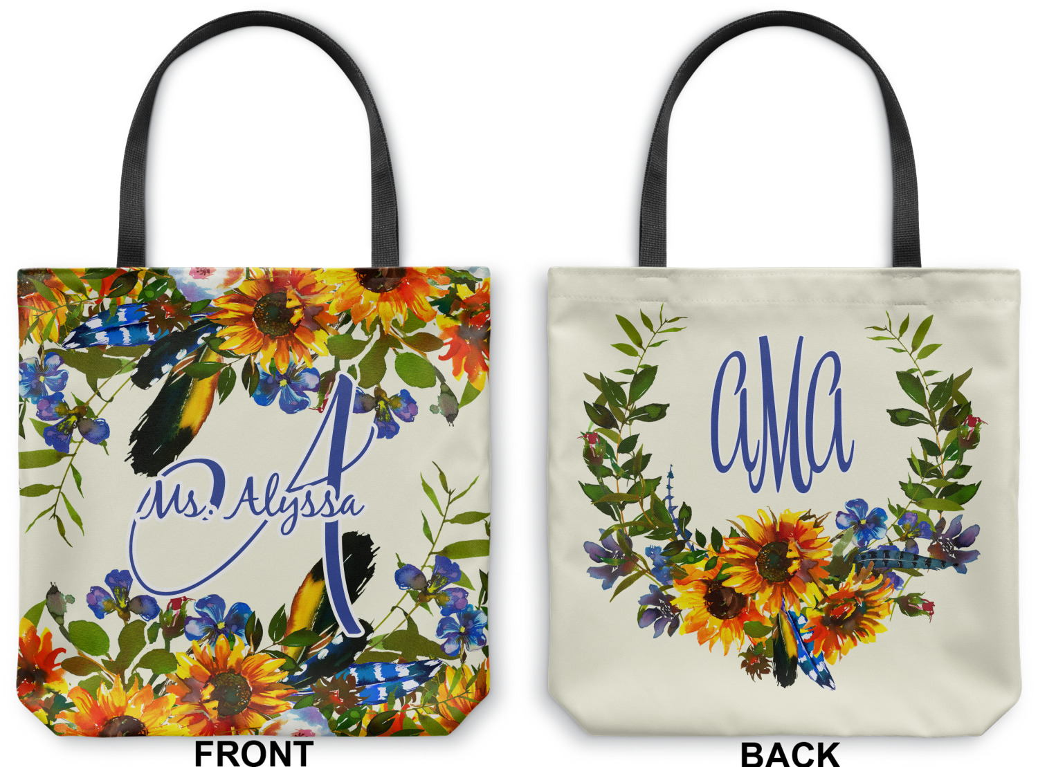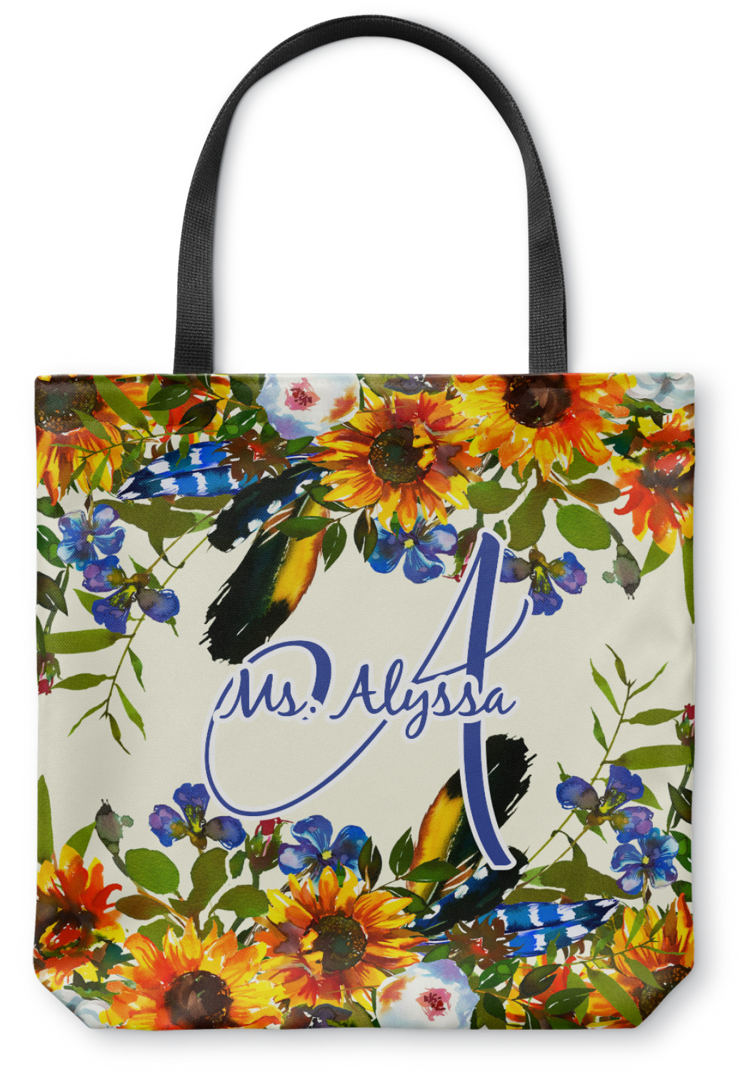 This sunflowers design template is simply beautiful. We chose to personalize it with a name & initial for the main design. We used the blue from the flower in the design and a really pale yellow background.