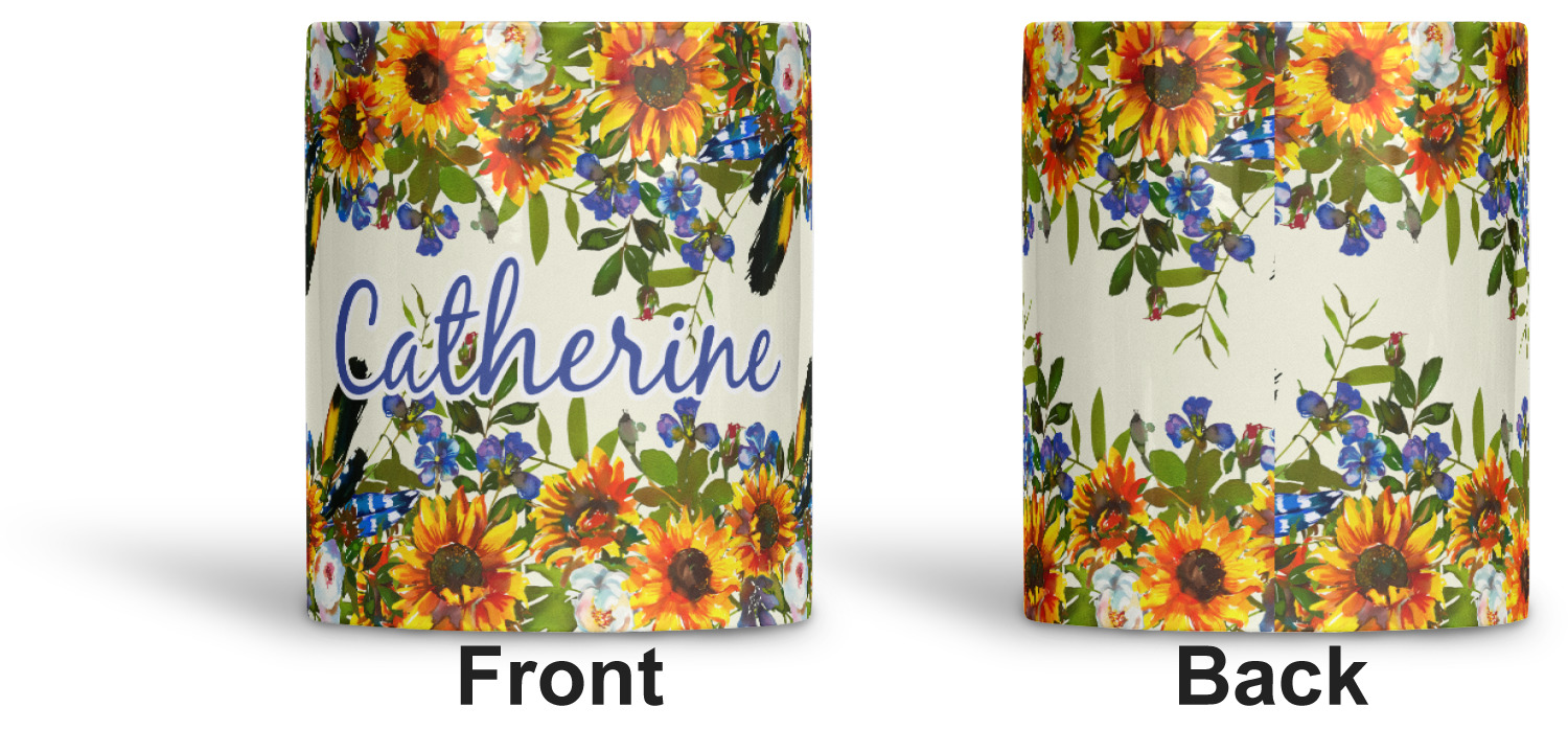 This sunflowers design template is simply beautiful. We chose to personalize it with a name & initial for the main design. We used the blue from the flower in the design and a really pale yellow background.