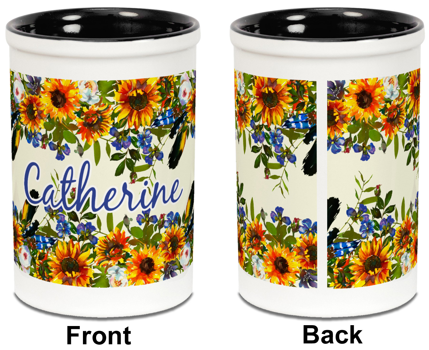 This sunflowers design template is simply beautiful. We chose to personalize it with a name & initial for the main design. We used the blue from the flower in the design and a really pale yellow background.