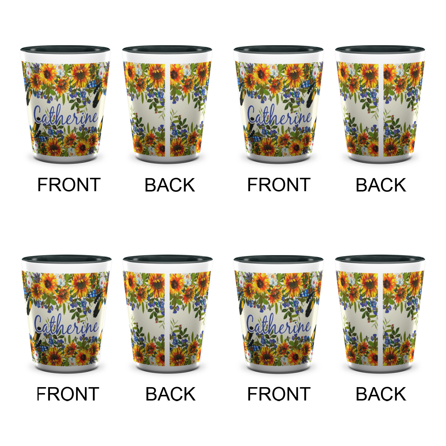 Made from ceramic these shot glasses are printed in full color with the design of your choice. These are a standard 1.5oz size and stand 2.25" tall. Available in a full white ceramic or a two-tone with a black color inside the shot glass. Buy a single or a set of 4, all of which can be designed separately to get you just what you want and need.