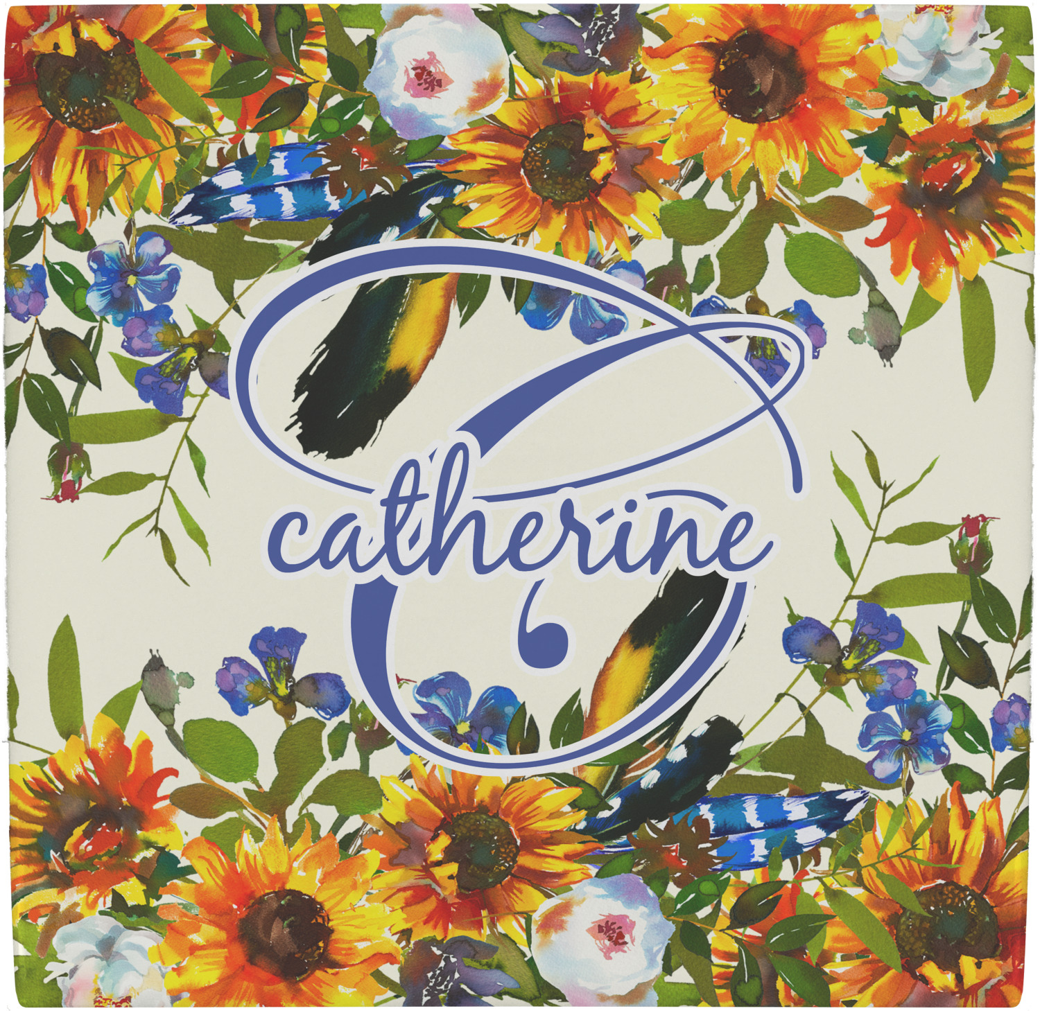 This sunflowers design template is simply beautiful. We chose to personalize it with a name & initial for the main design. We used the blue from the flower in the design and a really pale yellow background.