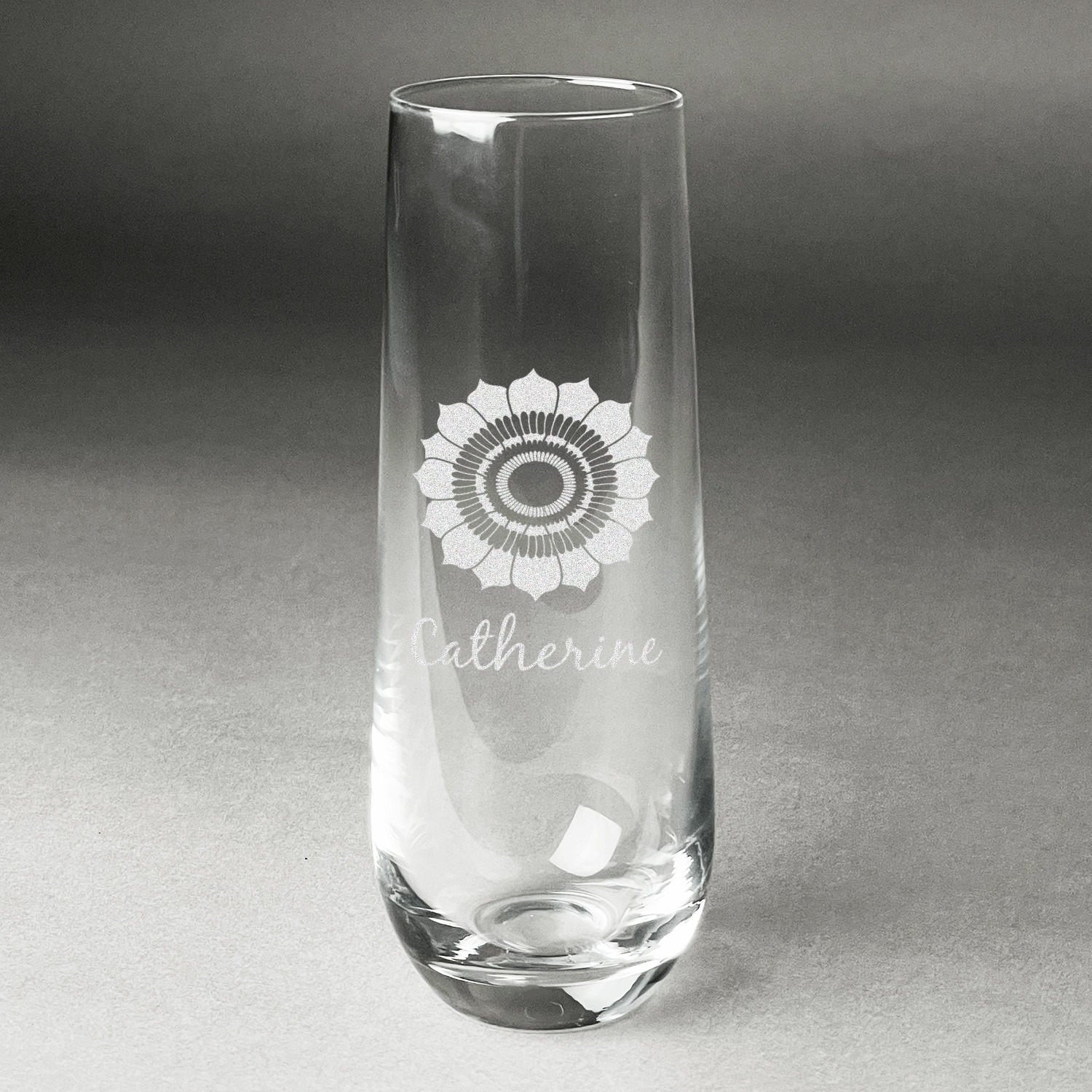 Design your custom stemless champagne flutes and we will then laser engrave your unique design on them for you. Whether they are a special gift for a bride and groom, for your New Years Eve party, or a bachelorette party you are sure to be able to add a custom personalized touch to make them perfect for the occasion.