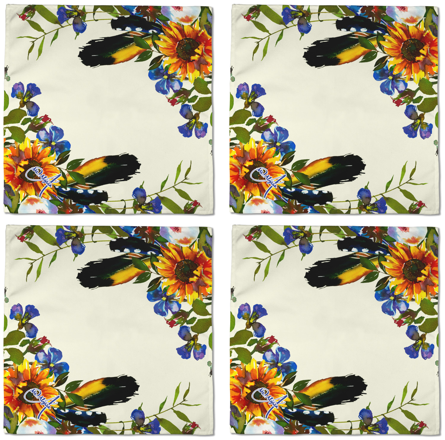 Each customizable cloth napkin is a polyester material guaranteed for long-term use. Since our napkins are cloth, it serves as a great reusable and eco-friendly dining decor. We sell personalized napkins individually or as a set of 4! Print your own unique design on all four napkins, or create four individual designs for each napkin! We offer two different napkin sizes - Cocktail napkins (approx. 10 x 10) and Dinner napkins (approx. 20 x 20). We print your design on one side, perfect for displaying your custom designed lunch napkins in any fold or table setting!